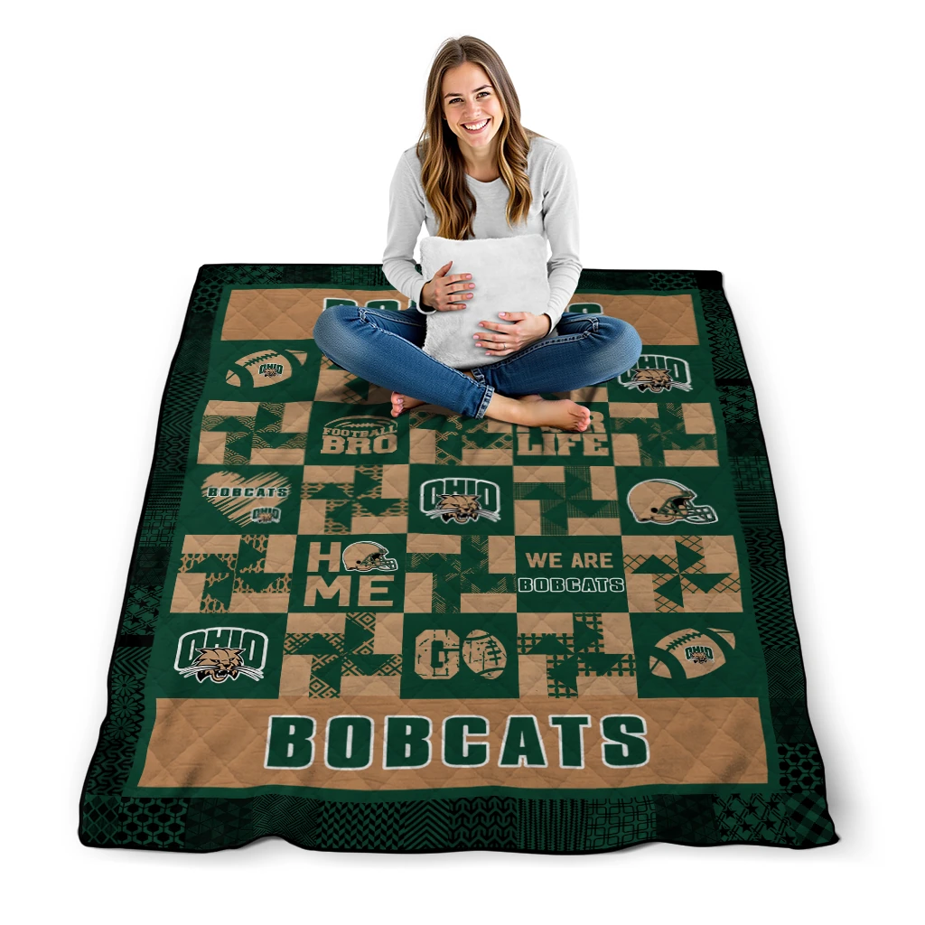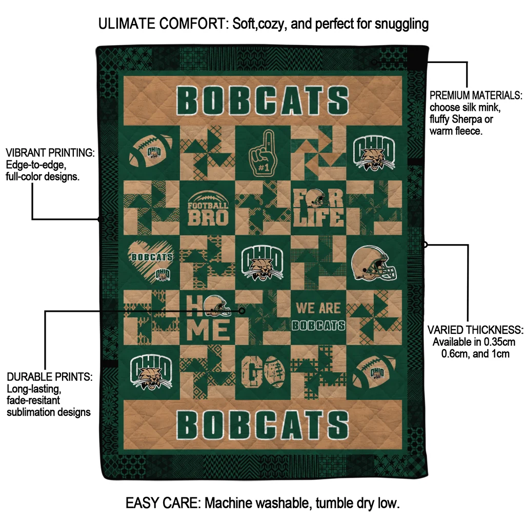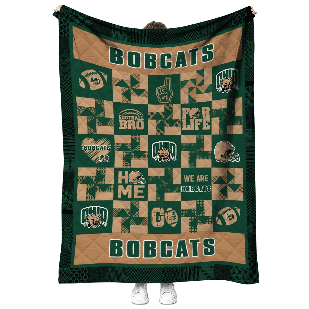 Wrap yourself in warmth and pride with the Ohio Bobcats Helmet Heart Green Quilt Blanket from the Ohio Bobcats Blankets collection at Yes That Blanket. Made from 100% premium quilting-weight polyester blended with a touch of microfiber, this quilt offers a smooth, soft finish you’ll love. Choose between two quilting styles—Stipple or Diagonal—and enjoy the comfort of a cotton-filled layer inside that adds extra coziness for every season. The border is available in classic black or white, giving your design a clean, timeless edge.