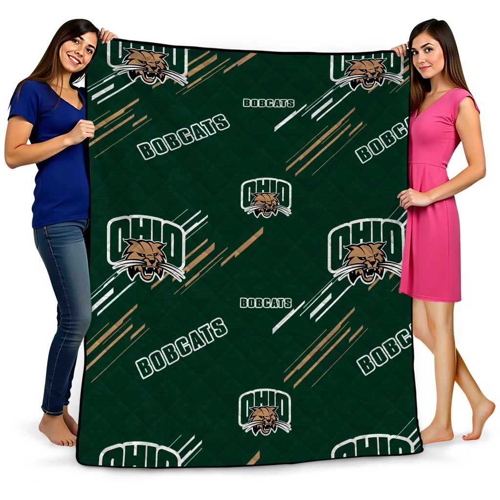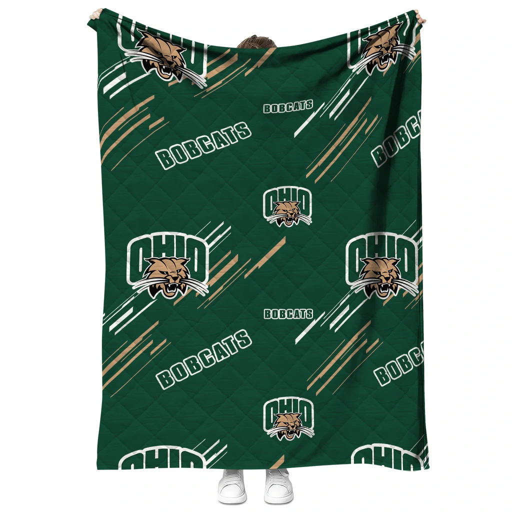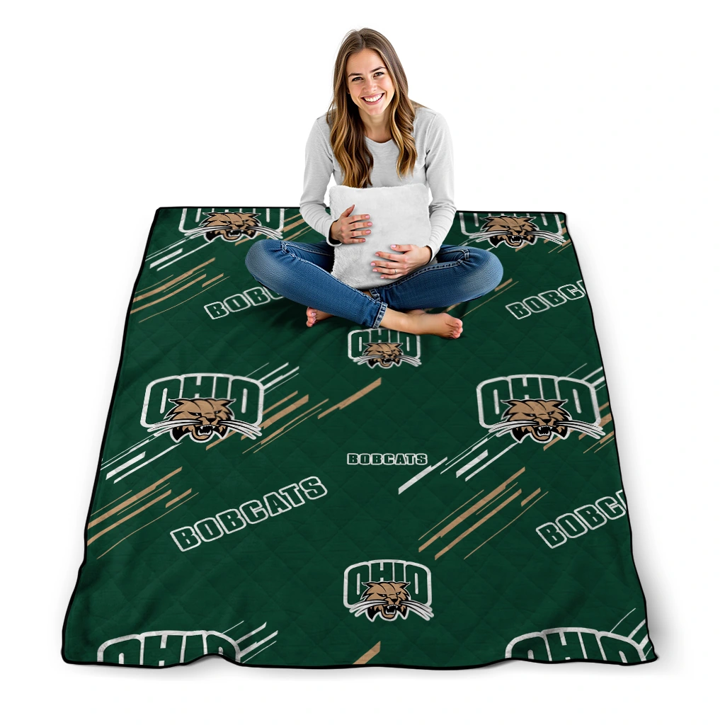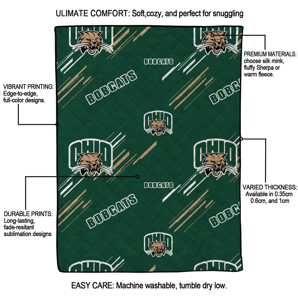 Wrap yourself in warmth and pride with the Ohio Bobcats Sketch Lines Green Quilt Blanket from the Ohio Bobcats Blankets collection at Yes That Blanket. Made from 100% premium quilting-weight polyester blended with a touch of microfiber, this quilt offers a smooth, soft finish you’ll love. Choose between two quilting styles—Stipple or Diagonal—and enjoy the comfort of a cotton-filled layer inside that adds extra coziness for every season. The border is available in classic black or white, giving your design a clean, timeless edge.