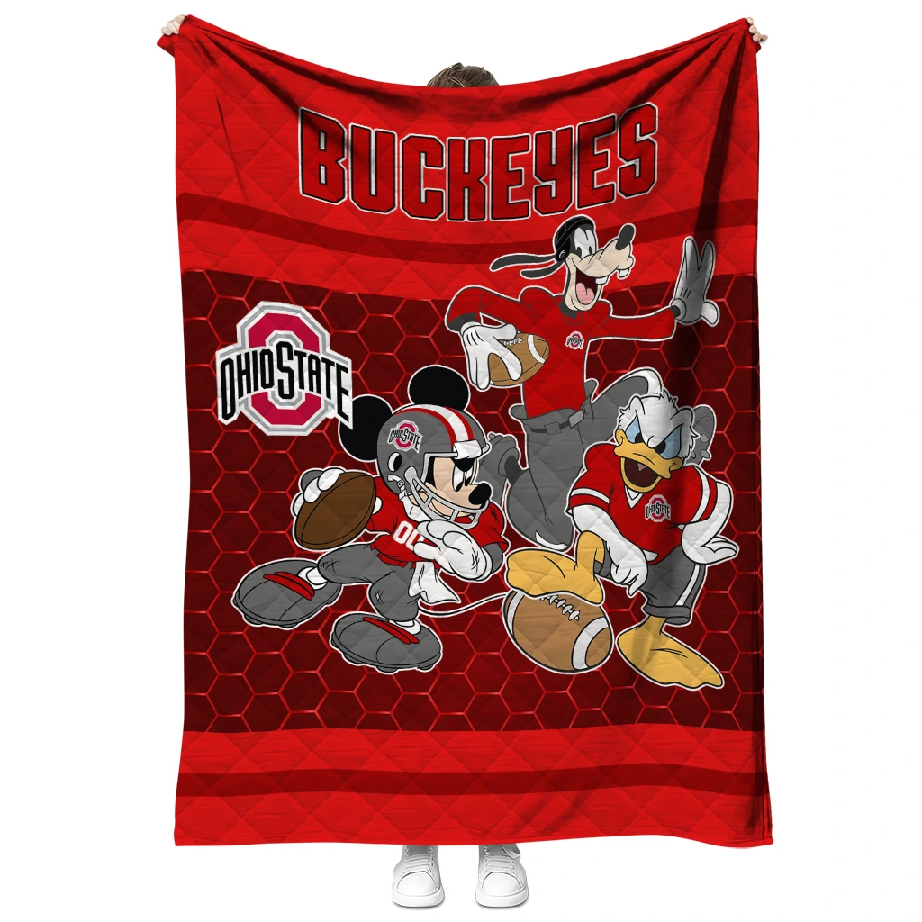 The Ohio State Buckeyes Disney Football Scarlet Quilt Blanket is more than a blanket—it’s everyday comfort, thoughtfully made. Crafted from premium quilting fabric with a soft microfiber touch, it offers a smooth hand-feel and lasting coziness. Layered quilting with a cotton-filled core provides adaptable warmth across seasons while maintaining a clean, tailored look on your bed or sofa.
