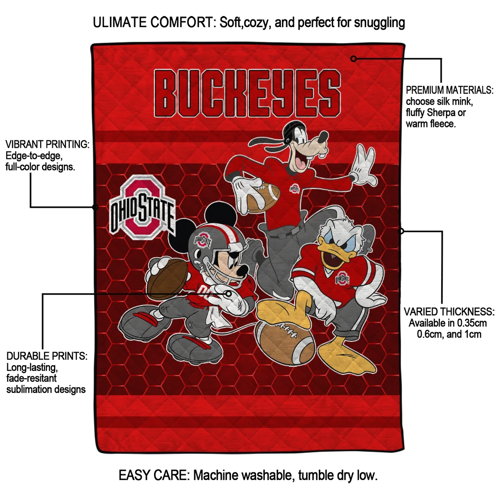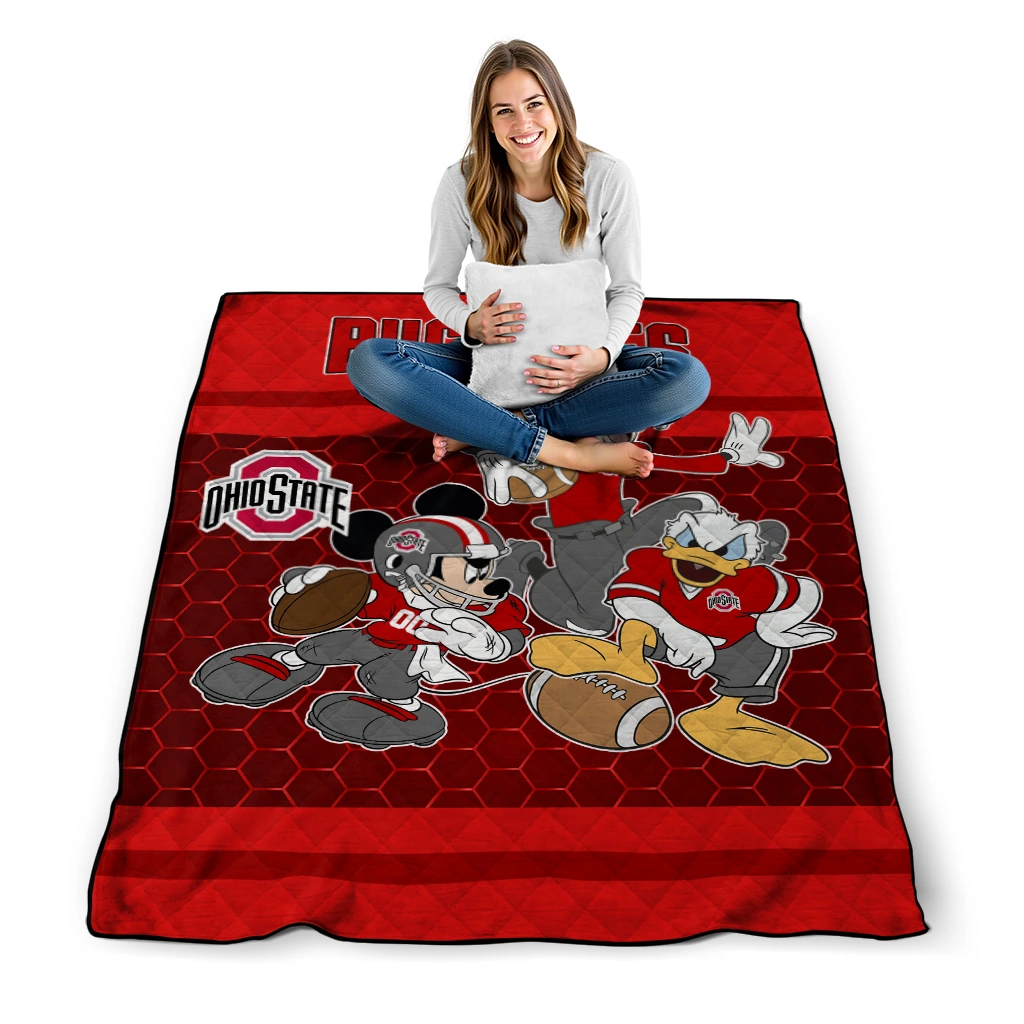 Wrap yourself in warmth and pride with the Ohio State Buckeyes Disney Football Scarlet Quilt Blanket from the Ohio State Buckeyes Blankets collection at Yes That Blanket. Made from 100% premium quilting-weight polyester blended with a touch of microfiber, this quilt offers a smooth, soft finish you’ll love. Choose between two quilting styles—Stipple or Diagonal—and enjoy the comfort of a cotton-filled layer inside that adds extra coziness for every season. The border is available in classic black or white, giving your design a clean, timeless edge.