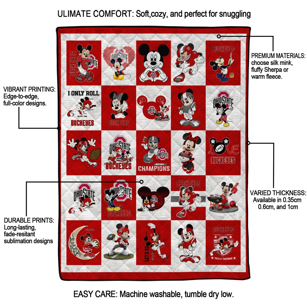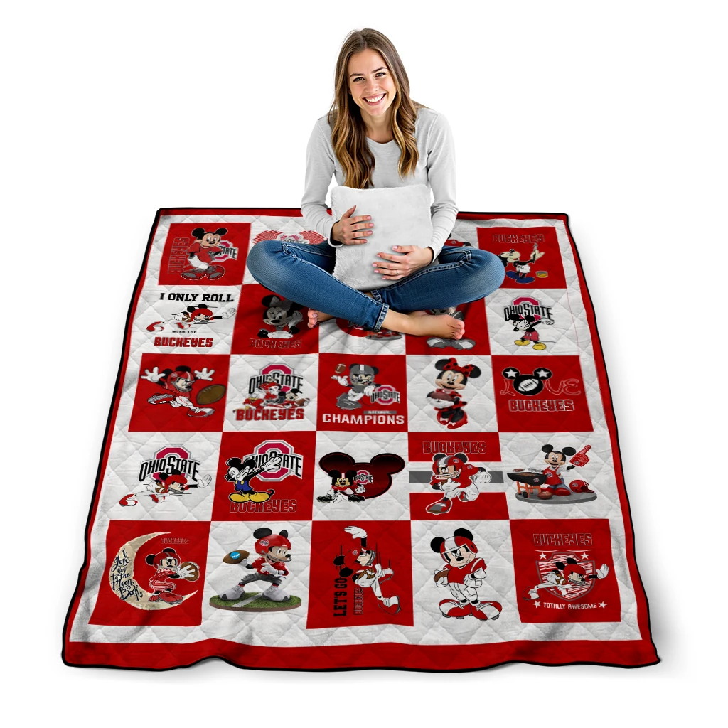 The Ohio State Buckeyes Mickey Mouse Motif Scarlet White Quilt Blanket is more than a blanket—it’s everyday comfort, thoughtfully made. Crafted from premium quilting fabric with a soft microfiber touch, it offers a smooth hand-feel and lasting coziness. Layered quilting with a cotton-filled core provides adaptable warmth across seasons while maintaining a clean, tailored look on your bed or sofa.