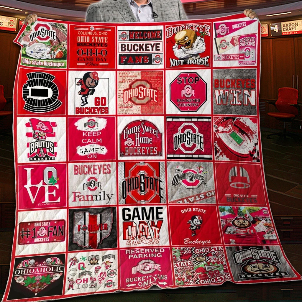 Ohio State Buckeyes Quilt Blanket – Patchwork Logo Red White
