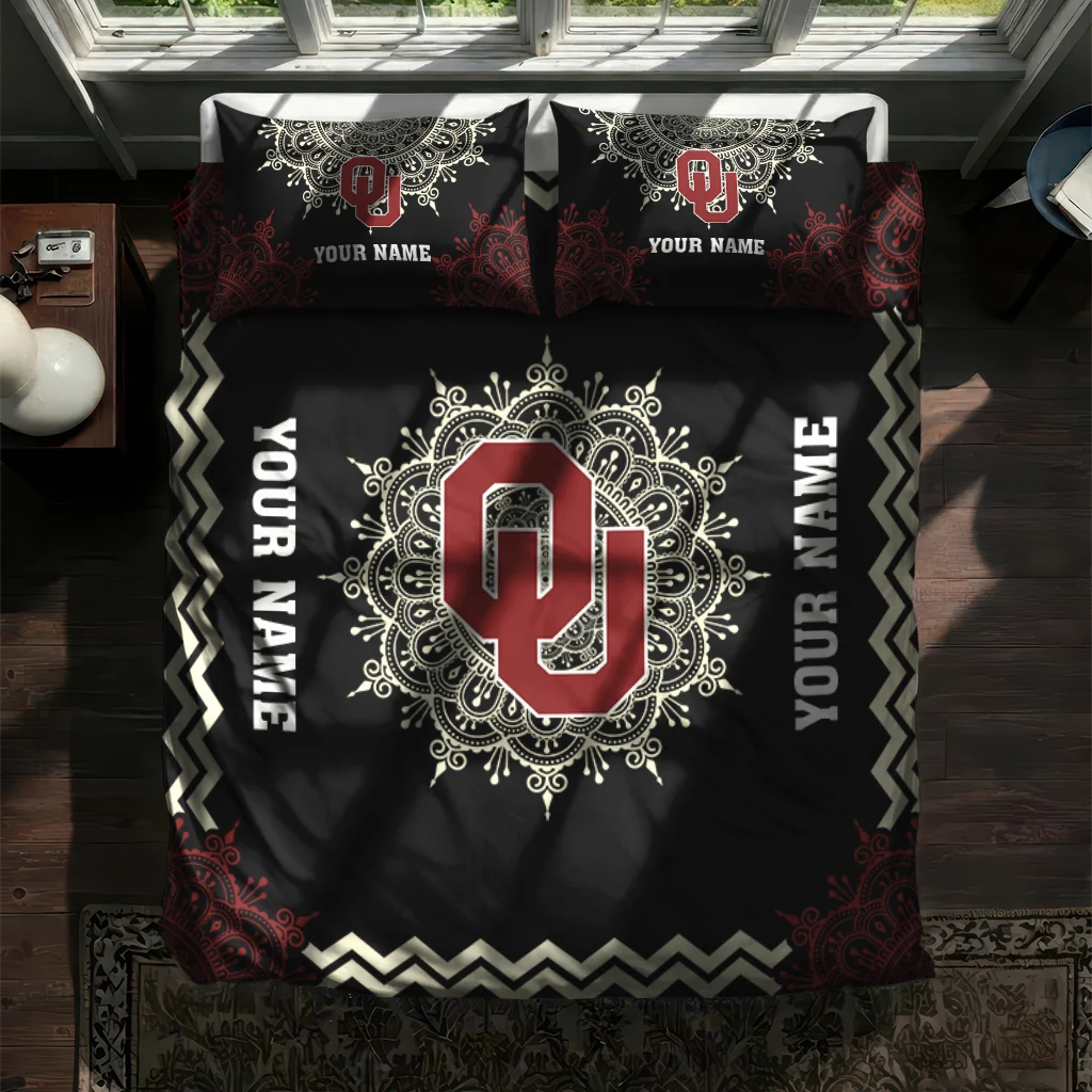Oklahoma Sooners Bedding Set – Customized Mandala Lacework Black Red
