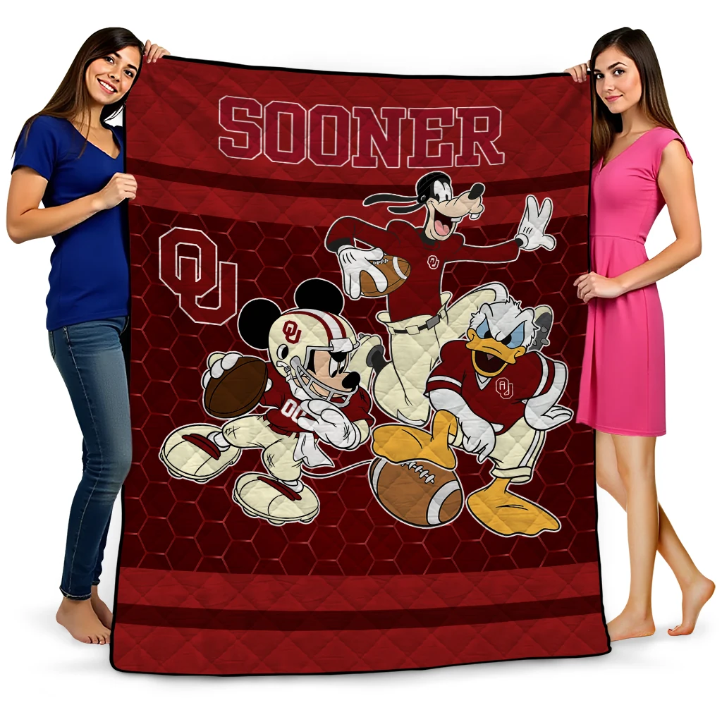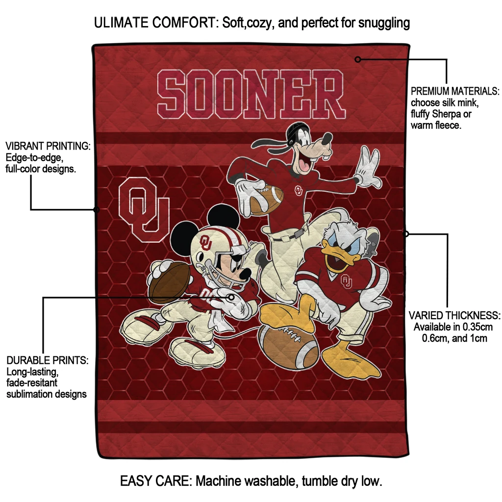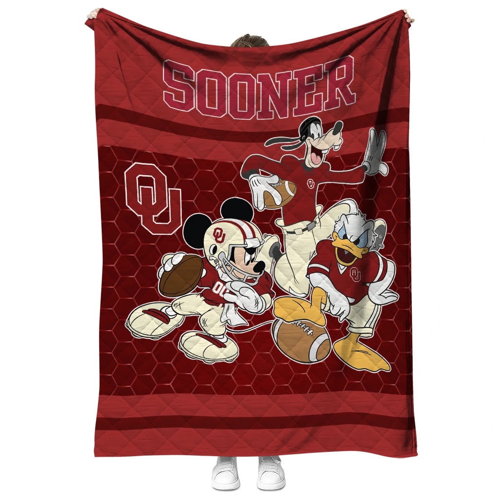 Wrap yourself in warmth and pride with the Oklahoma Sooners Disney Football Crimson Quilt Blanket from the Oklahoma Sooners Blankets collection at Yes That Blanket. Made from 100% premium quilting-weight polyester blended with a touch of microfiber, this quilt offers a smooth, soft finish you’ll love. Choose between two quilting styles—Stipple or Diagonal—and enjoy the comfort of a cotton-filled layer inside that adds extra coziness for every season. The border is available in classic black or white, giving your design a clean, timeless edge.
