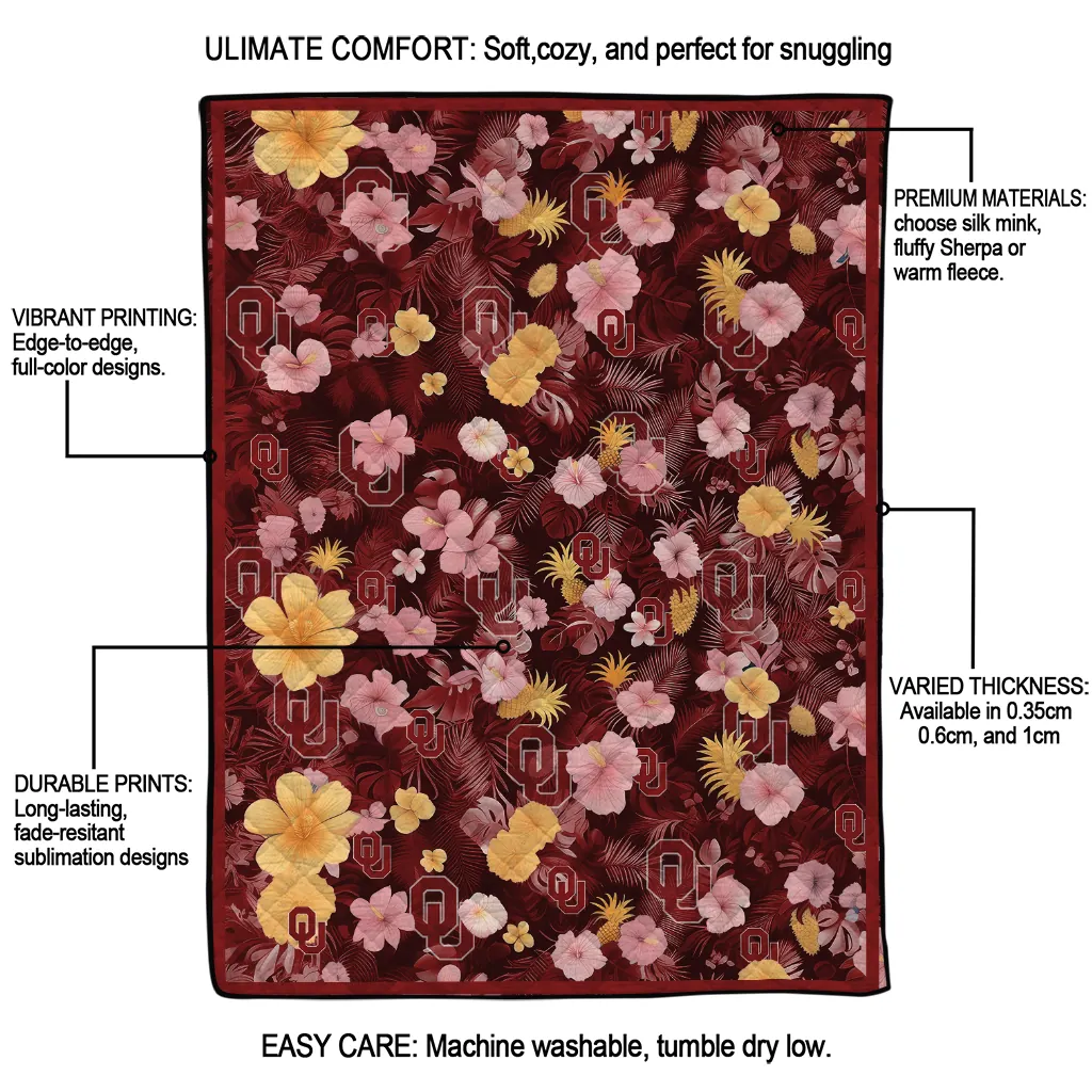 Wrap yourself in warmth and pride with the Oklahoma Sooners Hibiscus Foliage Crimson Quilt Blanket from the Oklahoma Sooners Blankets collection at Yes That Blanket. Made from 100% premium quilting-weight polyester blended with a touch of microfiber, this quilt offers a smooth, soft finish you’ll love. Choose between two quilting styles—Stipple or Diagonal—and enjoy the comfort of a cotton-filled layer inside that adds extra coziness for every season. The border is available in classic black or white, giving your design a clean, timeless edge.