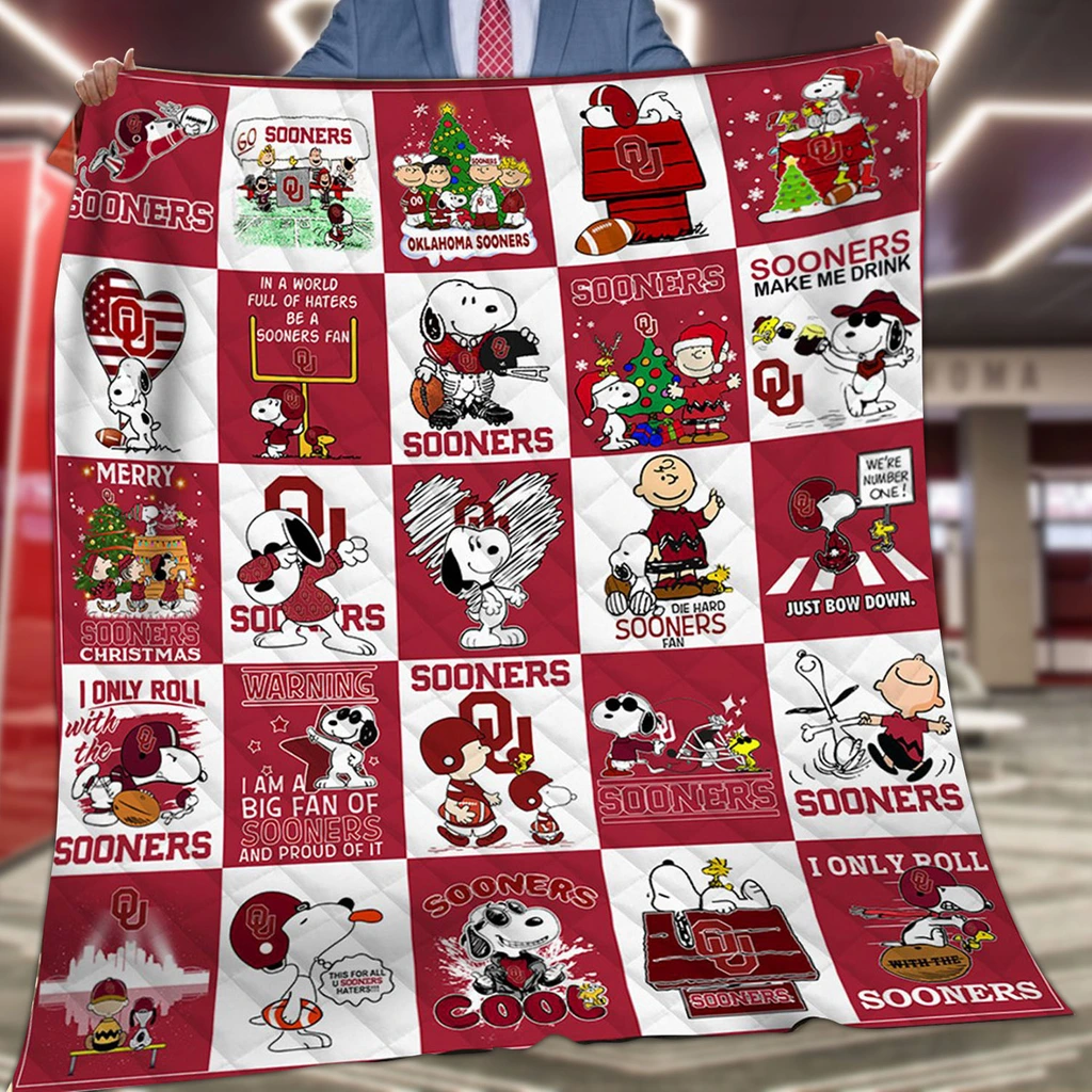 Oklahoma Sooners Quilt Blanket – Snoopy Cartoon Patchwork Red White
