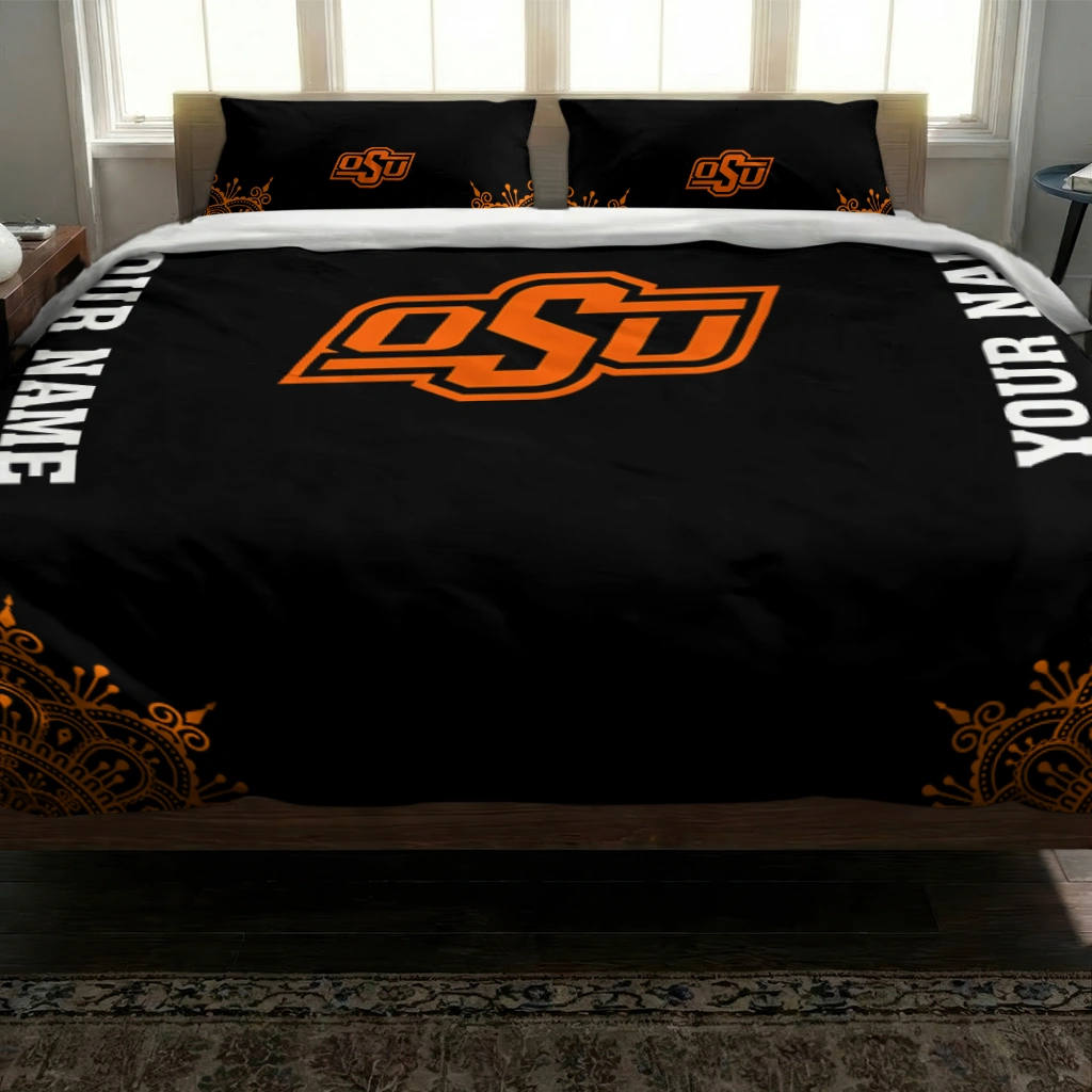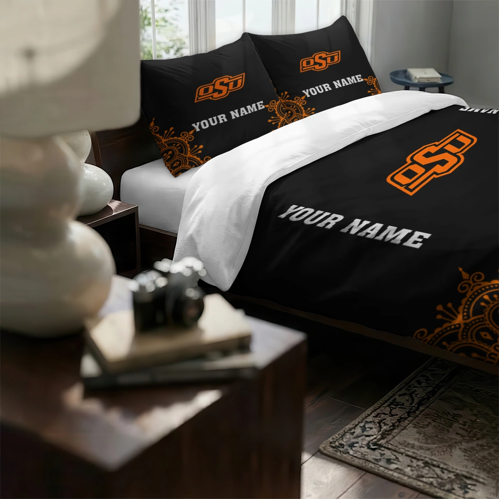 Oklahoma State Cowboys Bedding Set – Custom Mandala Lacework Black Orange