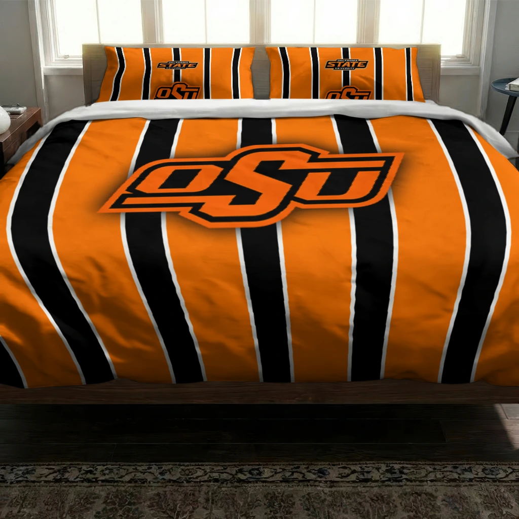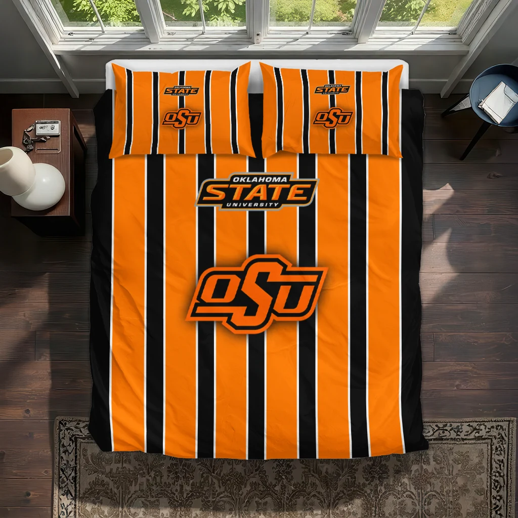 Oklahoma State Cowboys Bedding Set – Stripe Style Orange Black