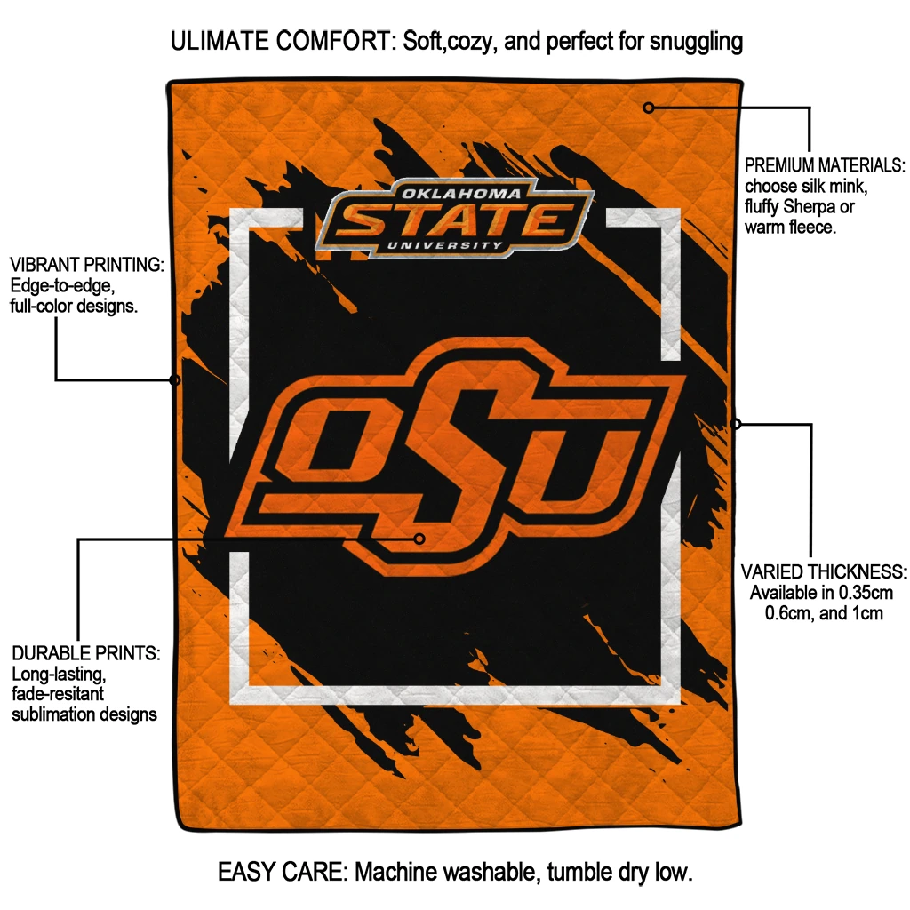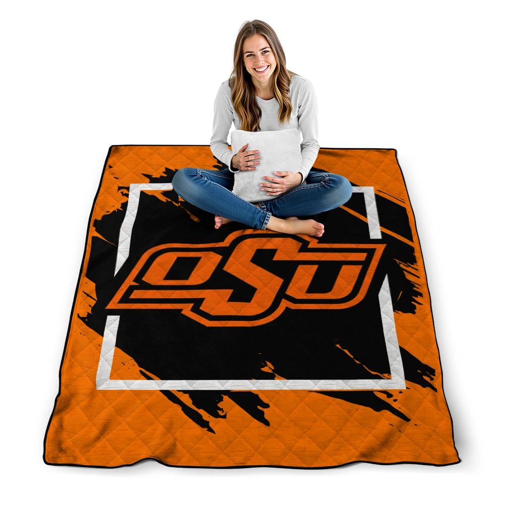 Wrap yourself in warmth and pride with the Oklahoma State Cowboys Block Border Orange Quilt Blanket from the Oklahoma State Cowboys Blankets collection at Yes That Blanket. Made from 100% premium quilting-weight polyester blended with a touch of microfiber, this quilt offers a smooth, soft finish you’ll love. Choose between two quilting styles—Stipple or Diagonal—and enjoy the comfort of a cotton-filled layer inside that adds extra coziness for every season. The border is available in classic black or white, giving your design a clean, timeless edge.