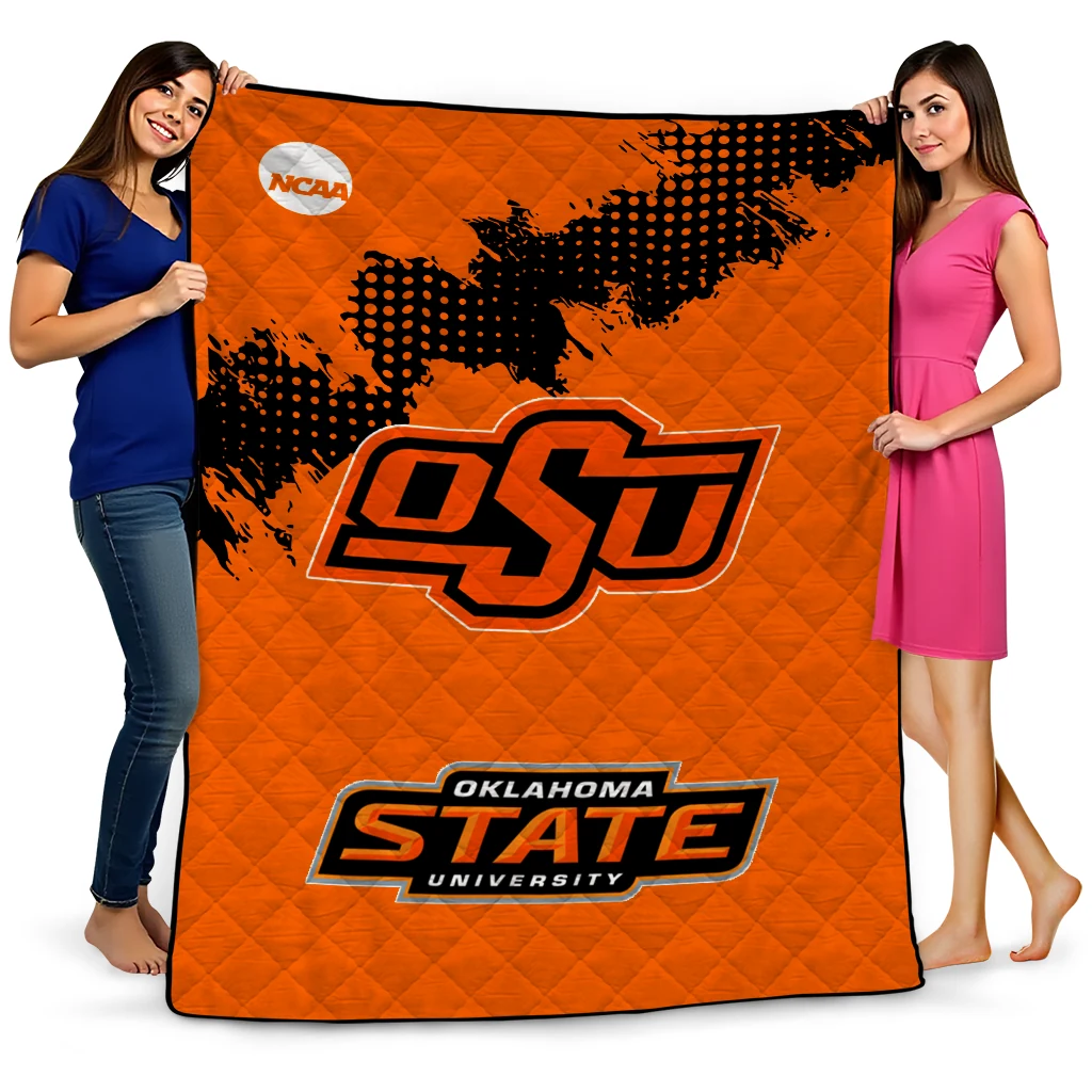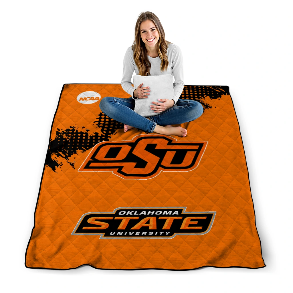 Wrap yourself in warmth and pride with the Oklahoma State Cowboys Paint Trail Orange Quilt Blanket from the Oklahoma State Cowboys Blankets collection at Yes That Blanket. Made from 100% premium quilting-weight polyester blended with a touch of microfiber, this quilt offers a smooth, soft finish you’ll love. Choose between two quilting styles—Stipple or Diagonal—and enjoy the comfort of a cotton-filled layer inside that adds extra coziness for every season. The border is available in classic black or white, giving your design a clean, timeless edge.