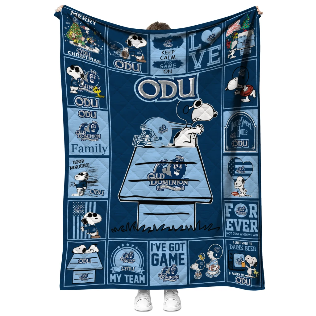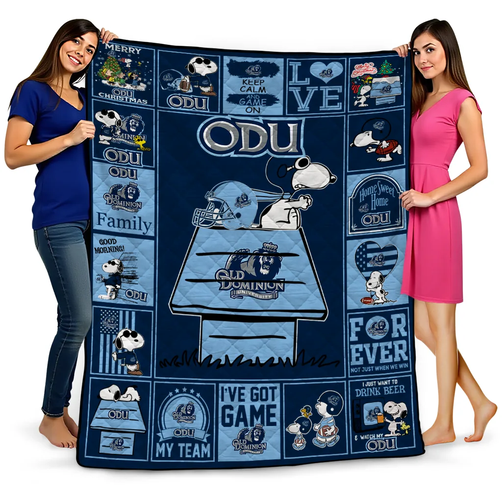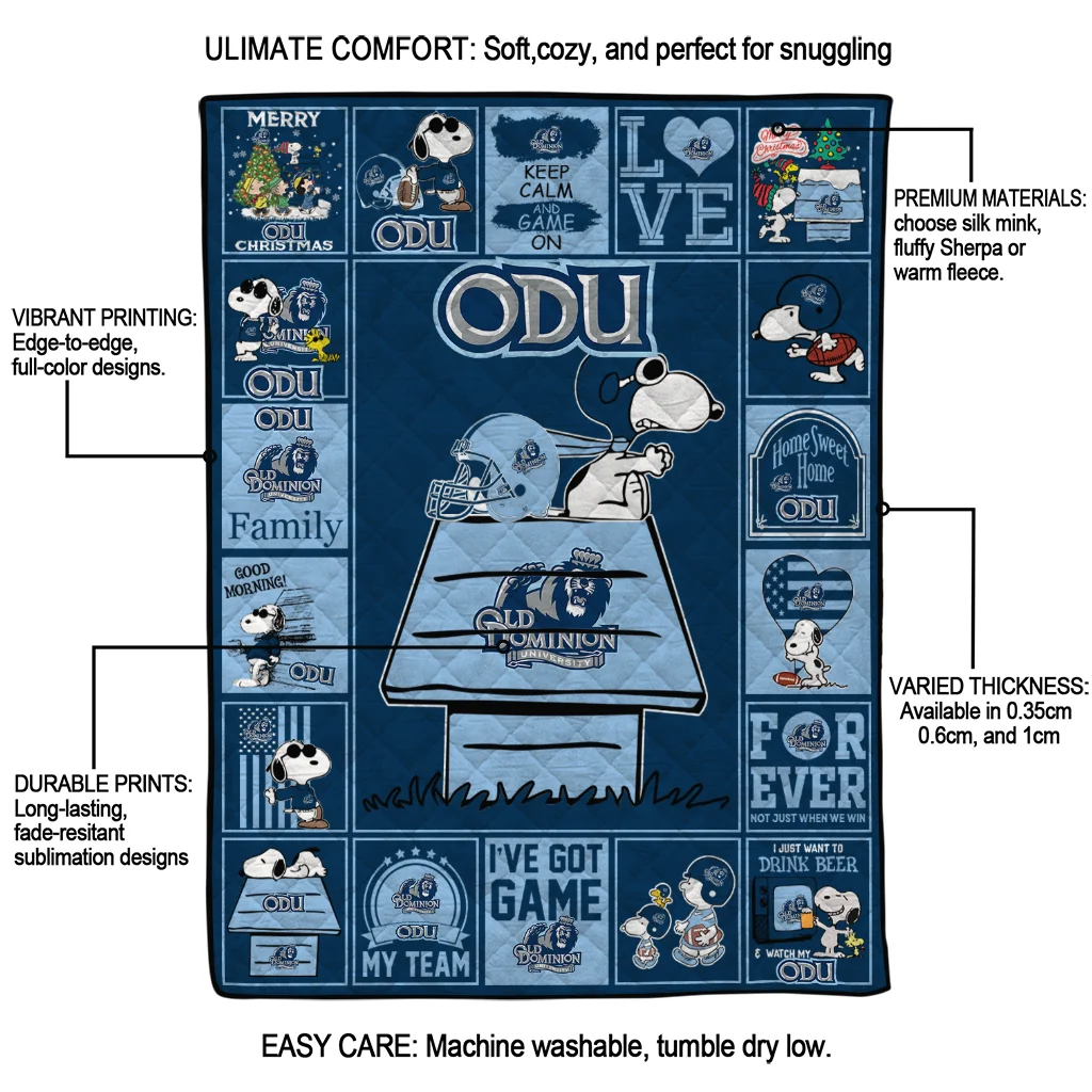 Wrap yourself in warmth and pride with the Old Dominion Monarchs Snoopy Love Blue Quilt Blanket from the Old Dominion Monarchs Blankets collection at Yes That Blanket. Made from 100% premium quilting-weight polyester blended with a touch of microfiber, this quilt offers a smooth, soft finish you’ll love. Choose between two quilting styles—Stipple or Diagonal—and enjoy the comfort of a cotton-filled layer inside that adds extra coziness for every season. The border is available in classic black or white, giving your design a clean, timeless edge.