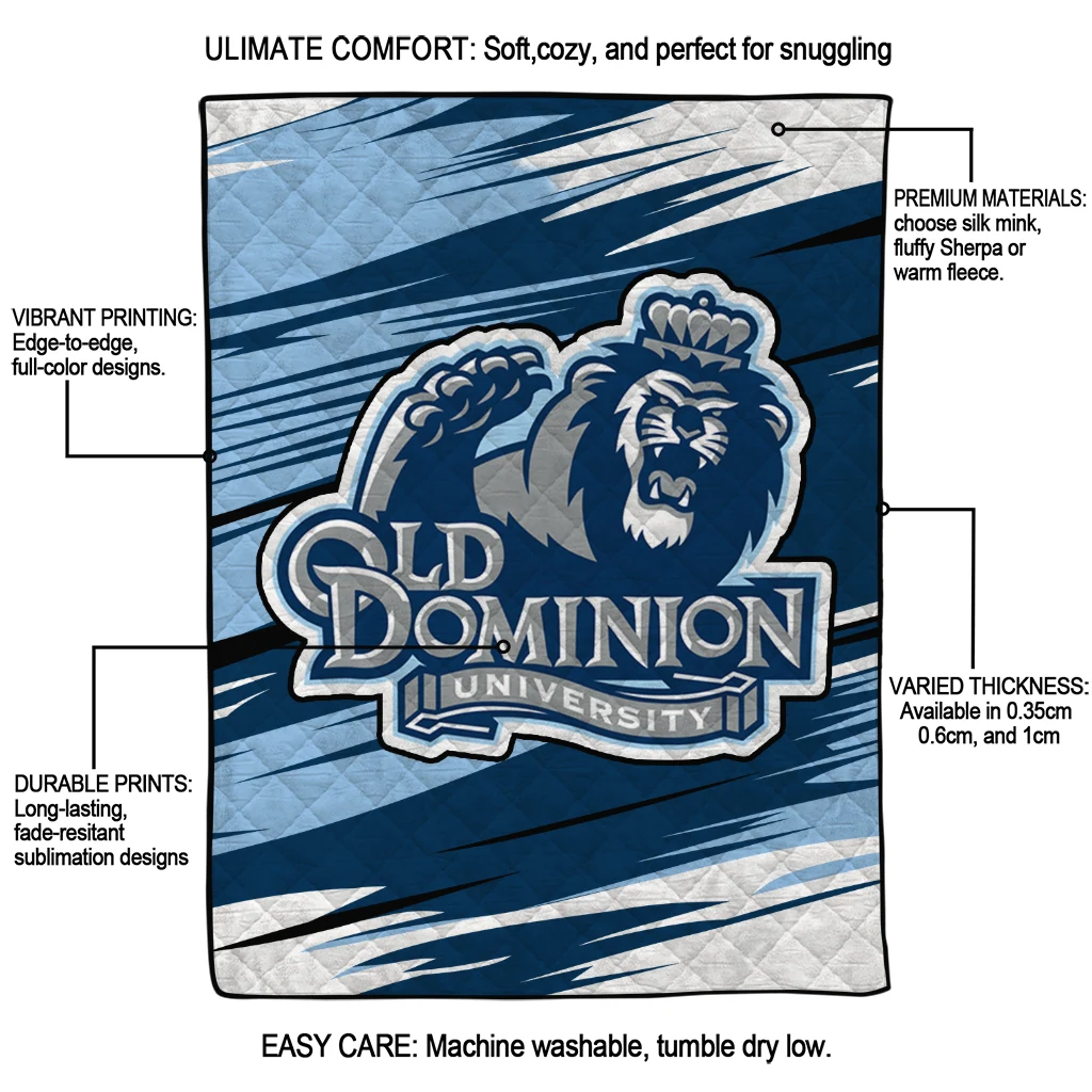 Wrap yourself in warmth and pride with the Old Dominion Monarchs Wild Lines Blue White Quilt Blanket from the Old Dominion Monarchs Blankets collection at Yes That Blanket. Made from 100% premium quilting-weight polyester blended with a touch of microfiber, this quilt offers a smooth, soft finish you’ll love. Choose between two quilting styles—Stipple or Diagonal—and enjoy the comfort of a cotton-filled layer inside that adds extra coziness for every season. The border is available in classic black or white, giving your design a clean, timeless edge.