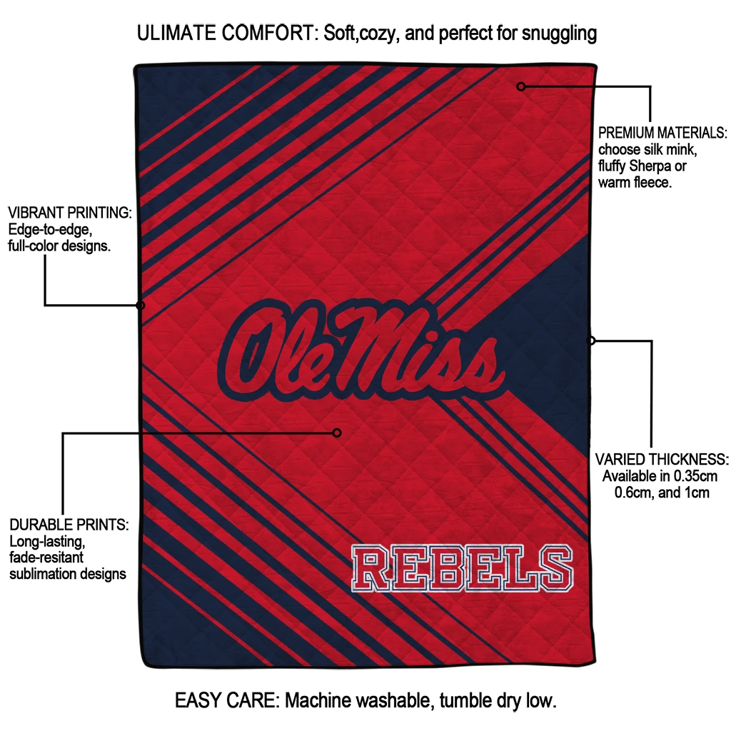 Wrap yourself in warmth and pride with the Ole Miss Rebels Arrow Layers Red Quilt Blanket from the Ole Miss Rebels Blankets collection at Yes That Blanket. Made from 100% premium quilting-weight polyester blended with a touch of microfiber, this quilt offers a smooth, soft finish you’ll love. Choose between two quilting styles—Stipple or Diagonal—and enjoy the comfort of a cotton-filled layer inside that adds extra coziness for every season. The border is available in classic black or white, giving your design a clean, timeless edge.