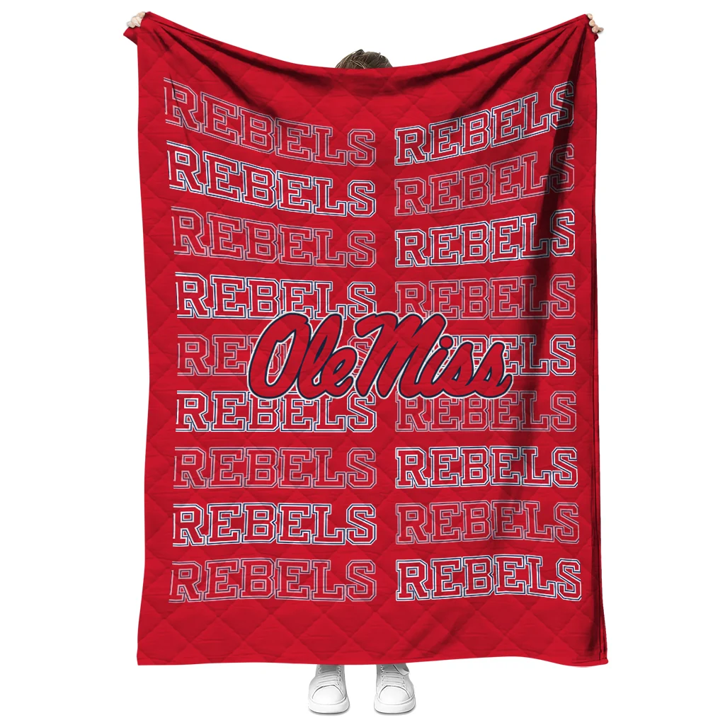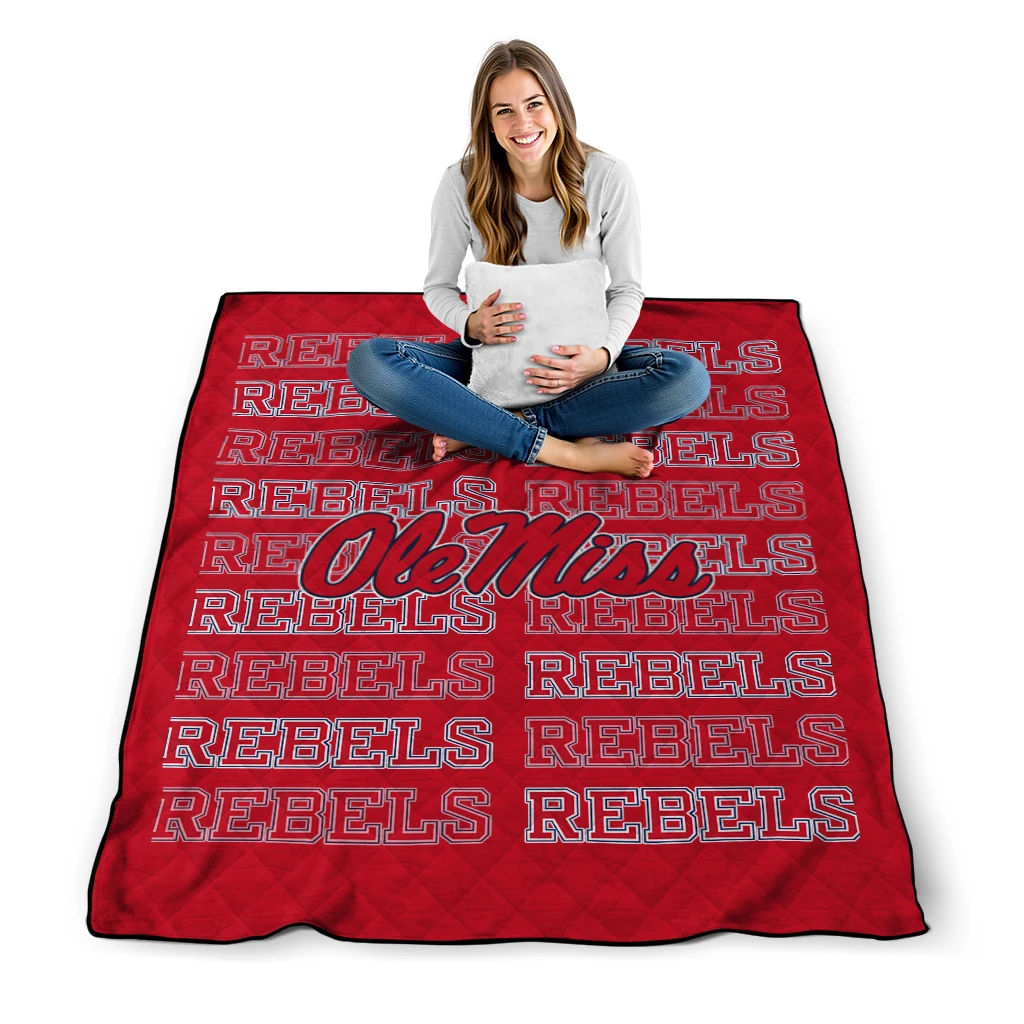 Wrap yourself in warmth and pride with the Ole Miss Rebels Bold Red Quilt Blanket from the Ole Miss Rebels Blankets collection at Yes That Blanket. Made from 100% premium quilting-weight polyester blended with a touch of microfiber, this quilt offers a smooth, soft finish you’ll love. Choose between two quilting styles—Stipple or Diagonal—and enjoy the comfort of a cotton-filled layer inside that adds extra coziness for every season. The border is available in classic black or white, giving your design a clean, timeless edge.
