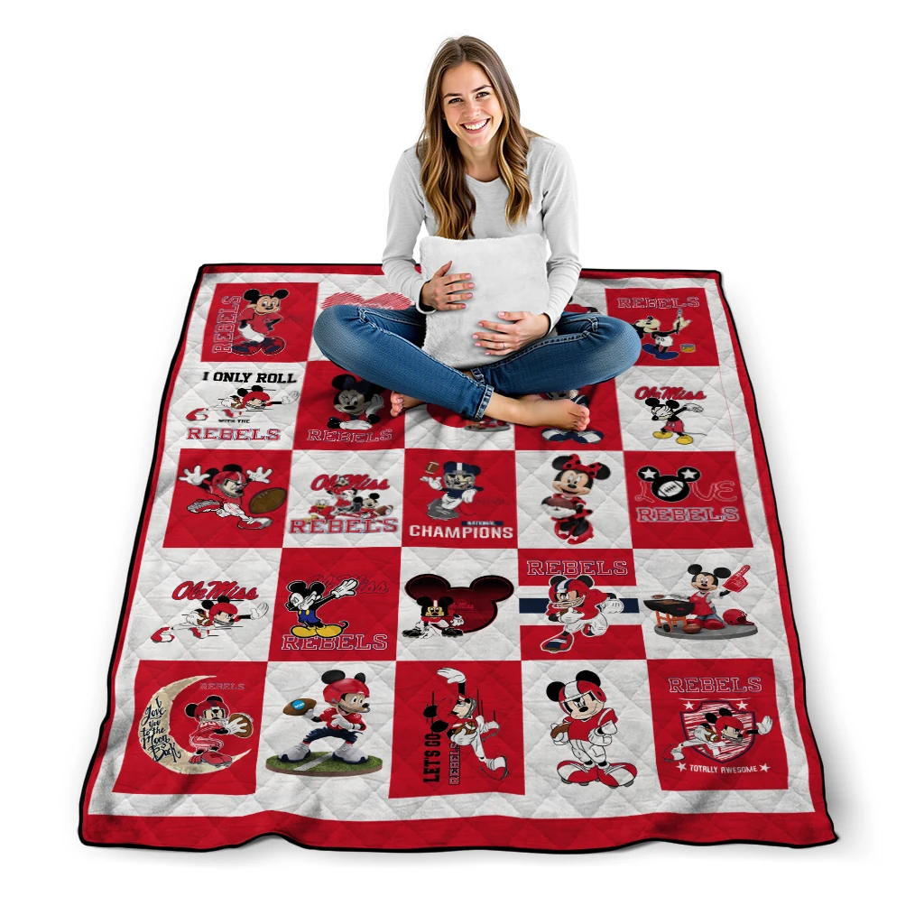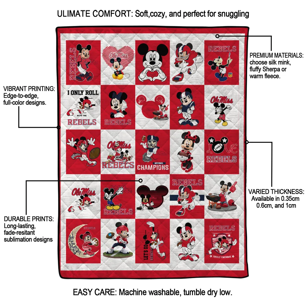 Ole Miss Rebels Mickey Mouse Motif Red White Quilt Blanket