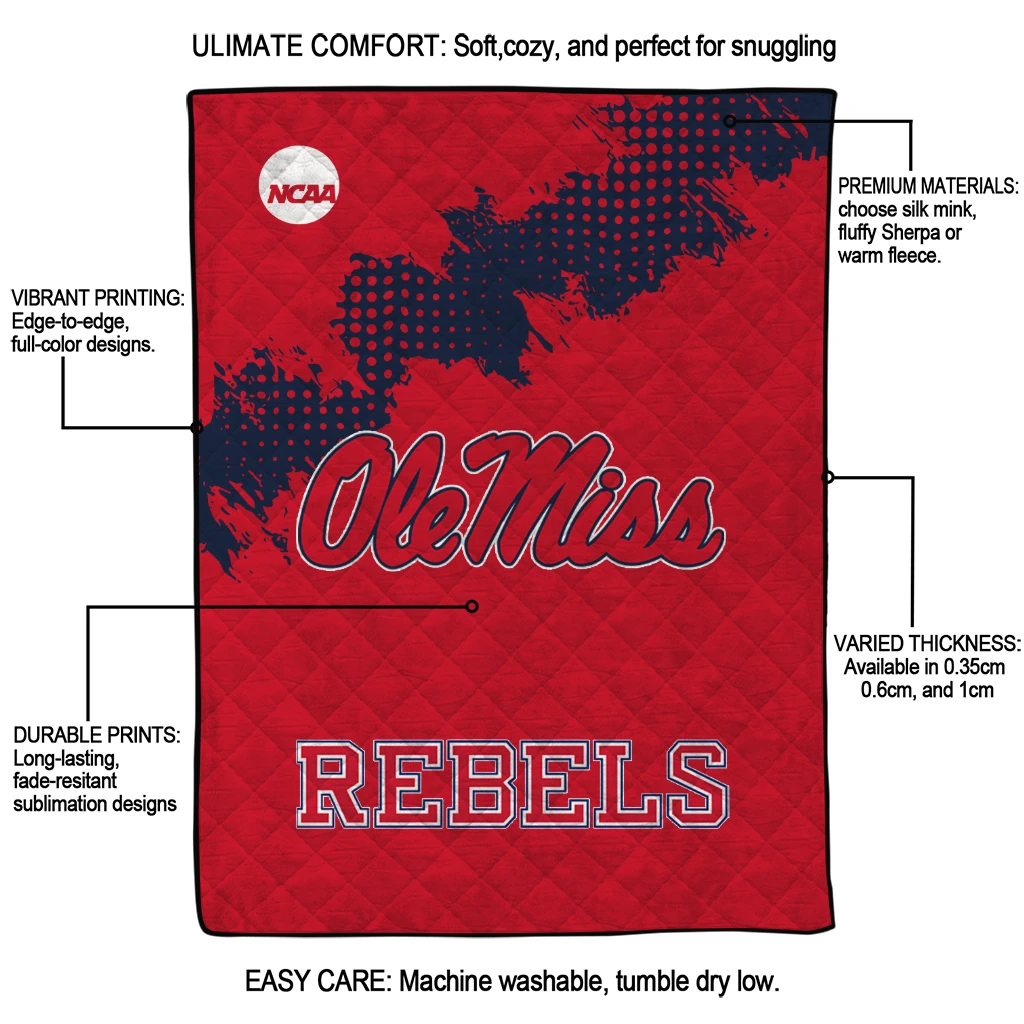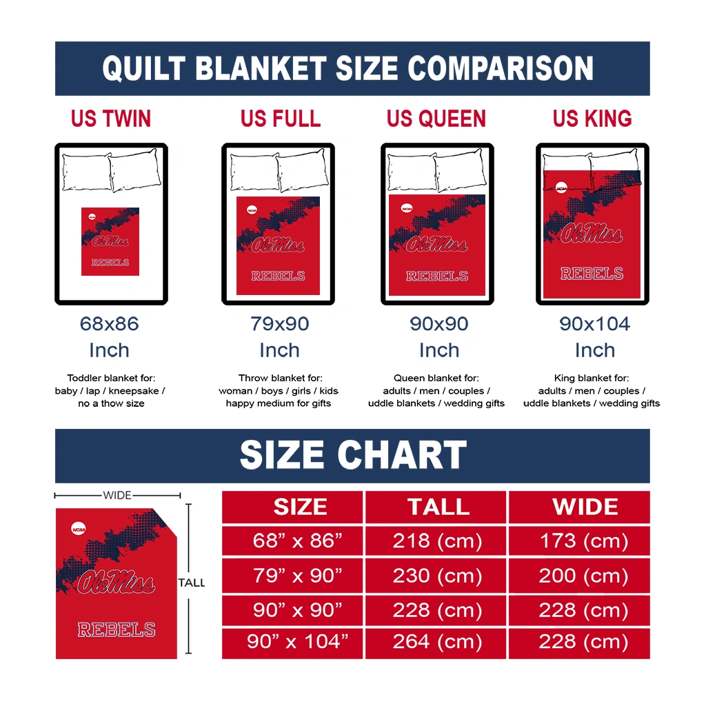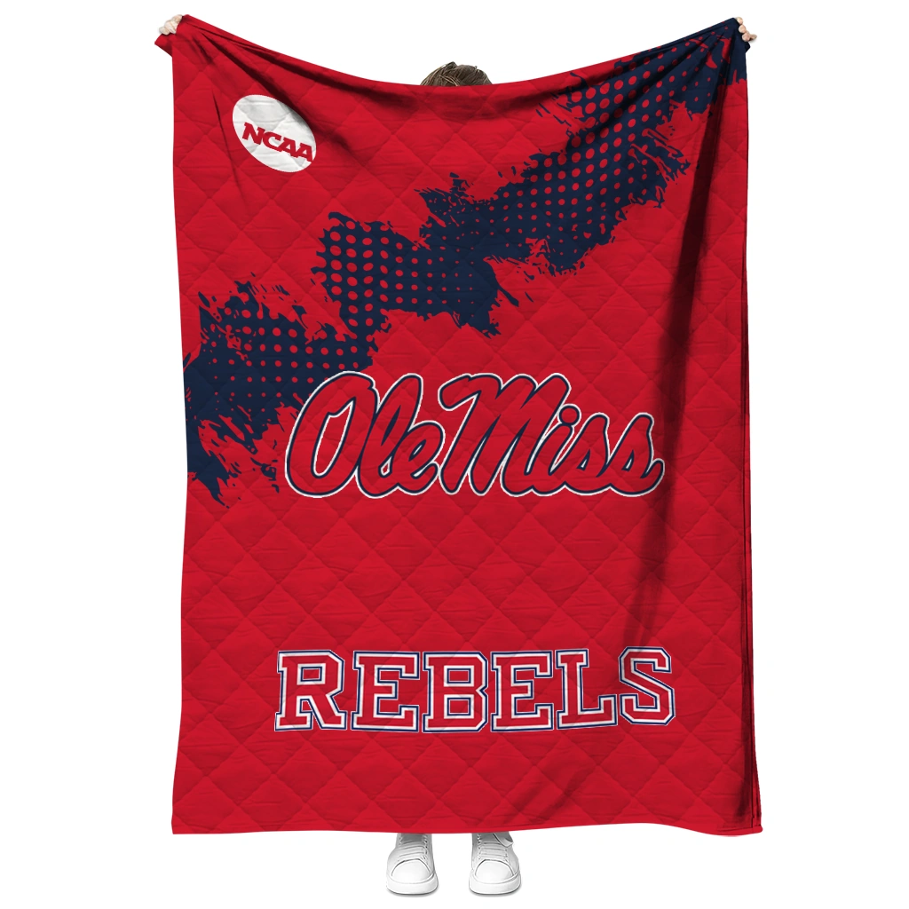 Wrap yourself in warmth and pride with the Ole Miss Rebels Paint Trail Red Quilt Blanket from the Ole Miss Rebels Blankets collection at Yes That Blanket. Made from 100% premium quilting-weight polyester blended with a touch of microfiber, this quilt offers a smooth, soft finish you’ll love. Choose between two quilting styles—Stipple or Diagonal—and enjoy the comfort of a cotton-filled layer inside that adds extra coziness for every season. The border is available in classic black or white, giving your design a clean, timeless edge.