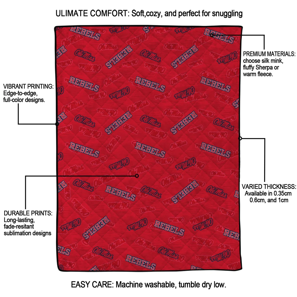 Wrap yourself in warmth and pride with the Ole Miss Rebels Solid Classic Red Quilt Blanket from the Ole Miss Rebels Blankets collection at Yes That Blanket. Made from 100% premium quilting-weight polyester blended with a touch of microfiber, this quilt offers a smooth, soft finish you’ll love. Choose between two quilting styles—Stipple or Diagonal—and enjoy the comfort of a cotton-filled layer inside that adds extra coziness for every season. The border is available in classic black or white, giving your design a clean, timeless edge.