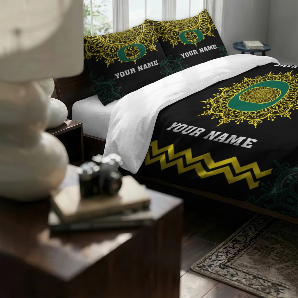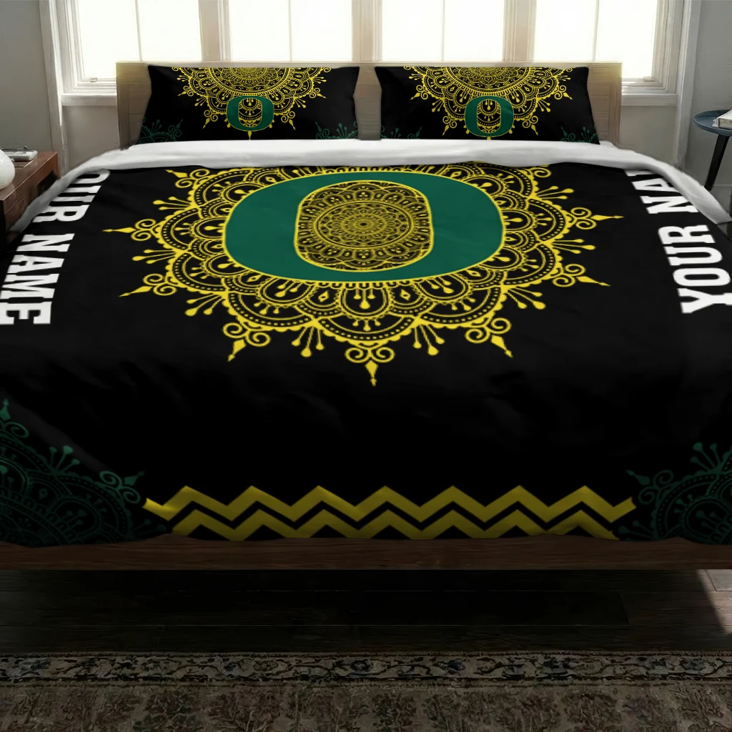 Oregon Ducks Bedding Set – Personalized Mandala Lacework Black Yellow