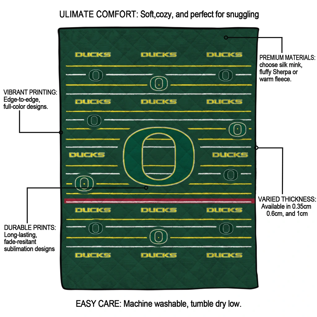 The Oregon Ducks Handdrawn Stripes Green Quilt Blanket is more than a blanket—it’s everyday comfort, thoughtfully made. Crafted from premium quilting fabric with a soft microfiber touch, it offers a smooth hand-feel and lasting coziness. Layered quilting with a cotton-filled core provides adaptable warmth across seasons while maintaining a clean, tailored look on your bed or sofa.