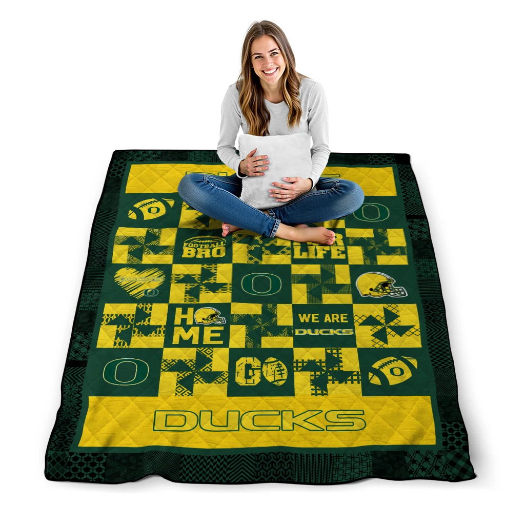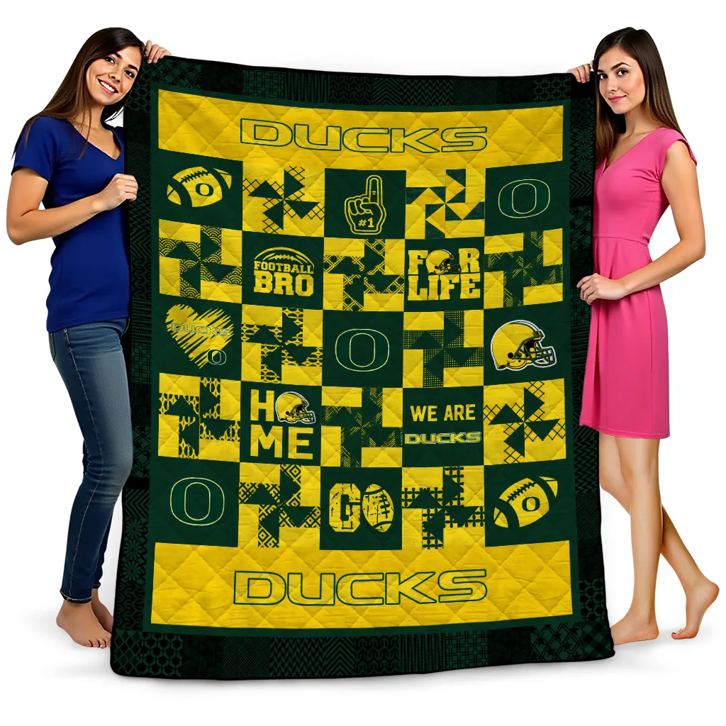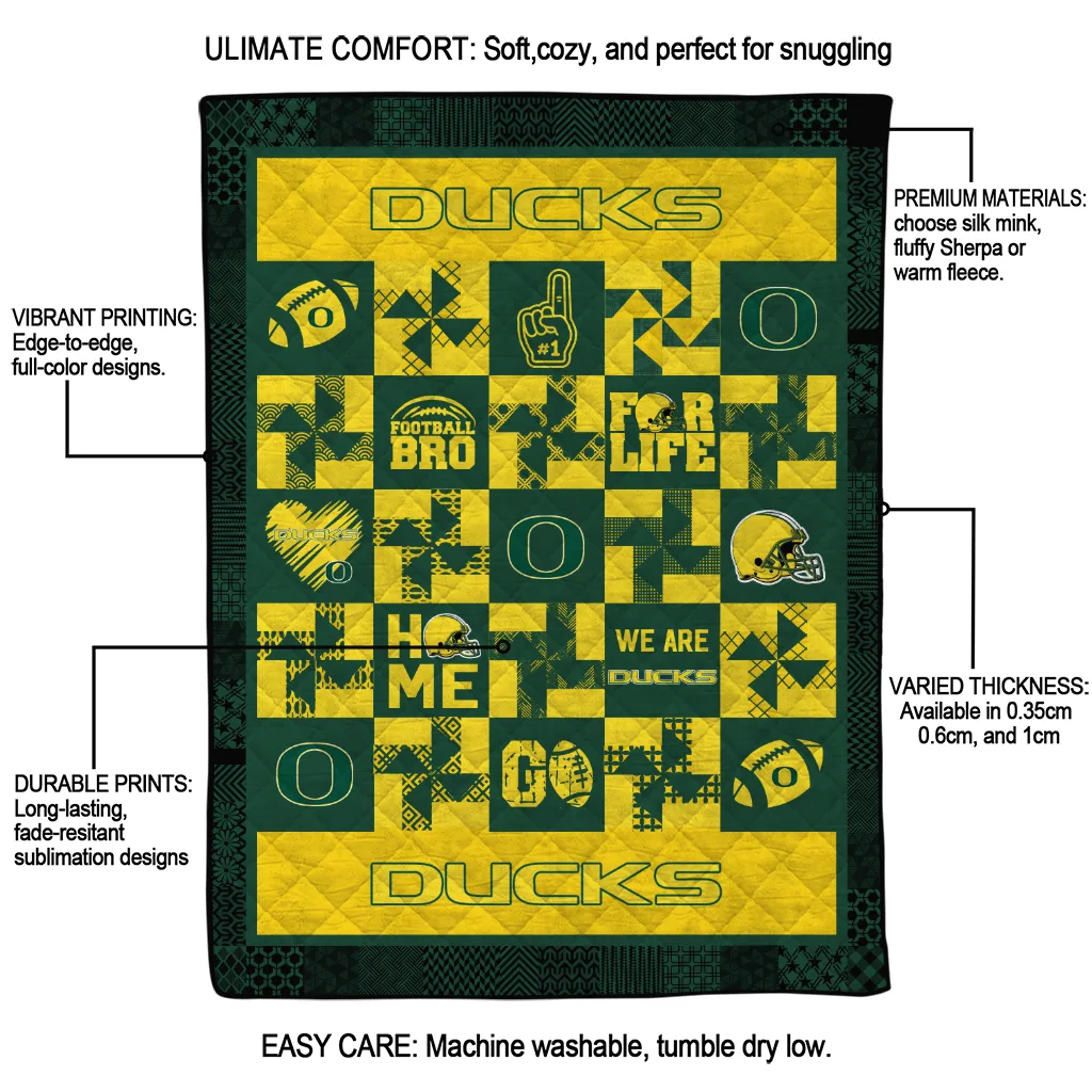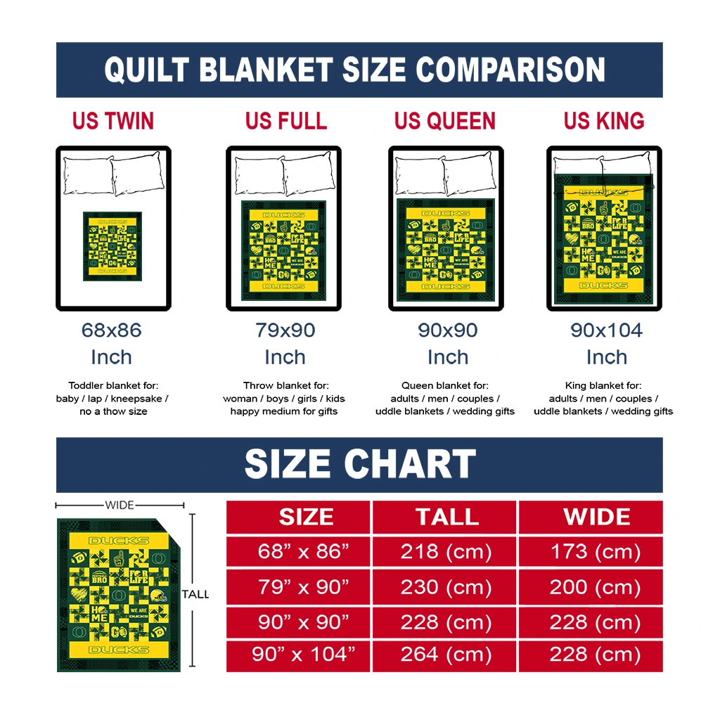 Wrap yourself in warmth and pride with the Oregon Ducks Helmet Heart Green Quilt Blanket from the Oregon Ducks Blankets collection at Yes That Blanket. Made from 100% premium quilting-weight polyester blended with a touch of microfiber, this quilt offers a smooth, soft finish you’ll love. Choose between two quilting styles—Stipple or Diagonal—and enjoy the comfort of a cotton-filled layer inside that adds extra coziness for every season. The border is available in classic black or white, giving your design a clean, timeless edge.