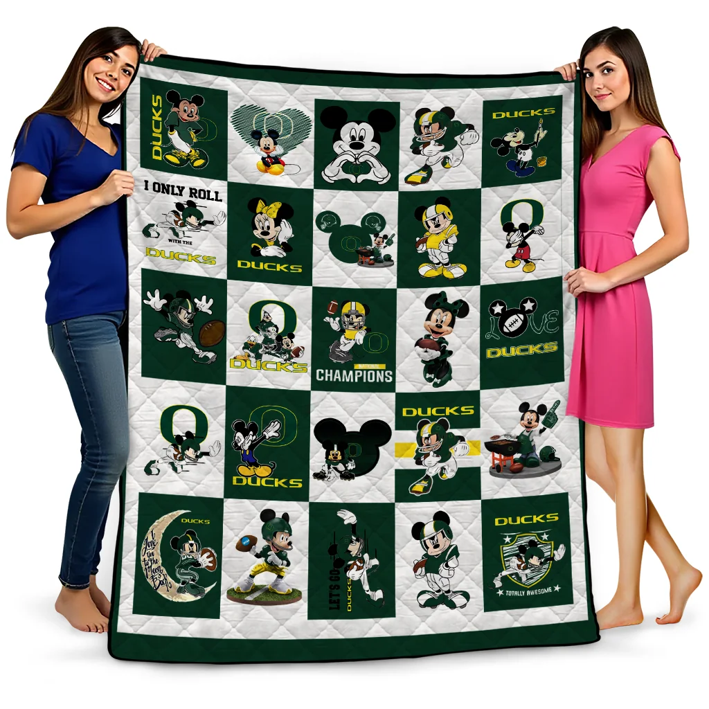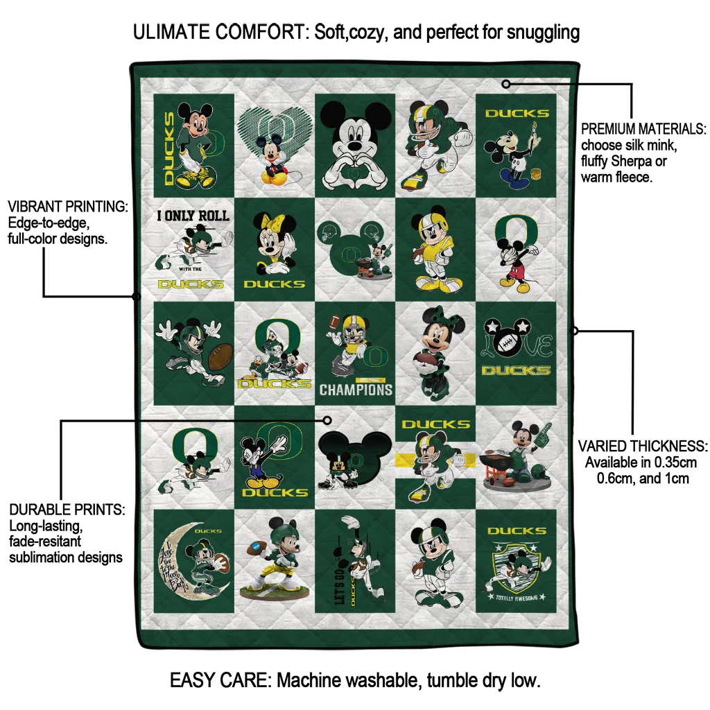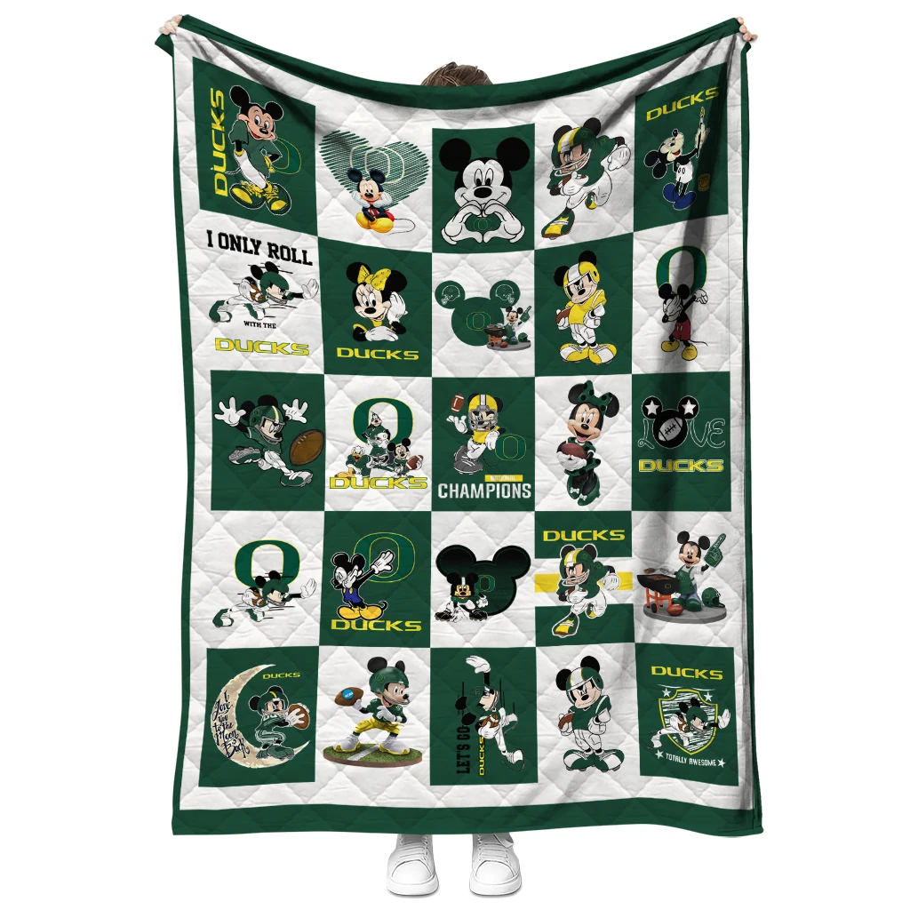 The Oregon Ducks Mickey Mouse Motif Green White Quilt Blanket is more than a blanket—it’s everyday comfort, thoughtfully made. Crafted from premium quilting fabric with a soft microfiber touch, it offers a smooth hand-feel and lasting coziness. Layered quilting with a cotton-filled core provides adaptable warmth across seasons while maintaining a clean, tailored look on your bed or sofa.