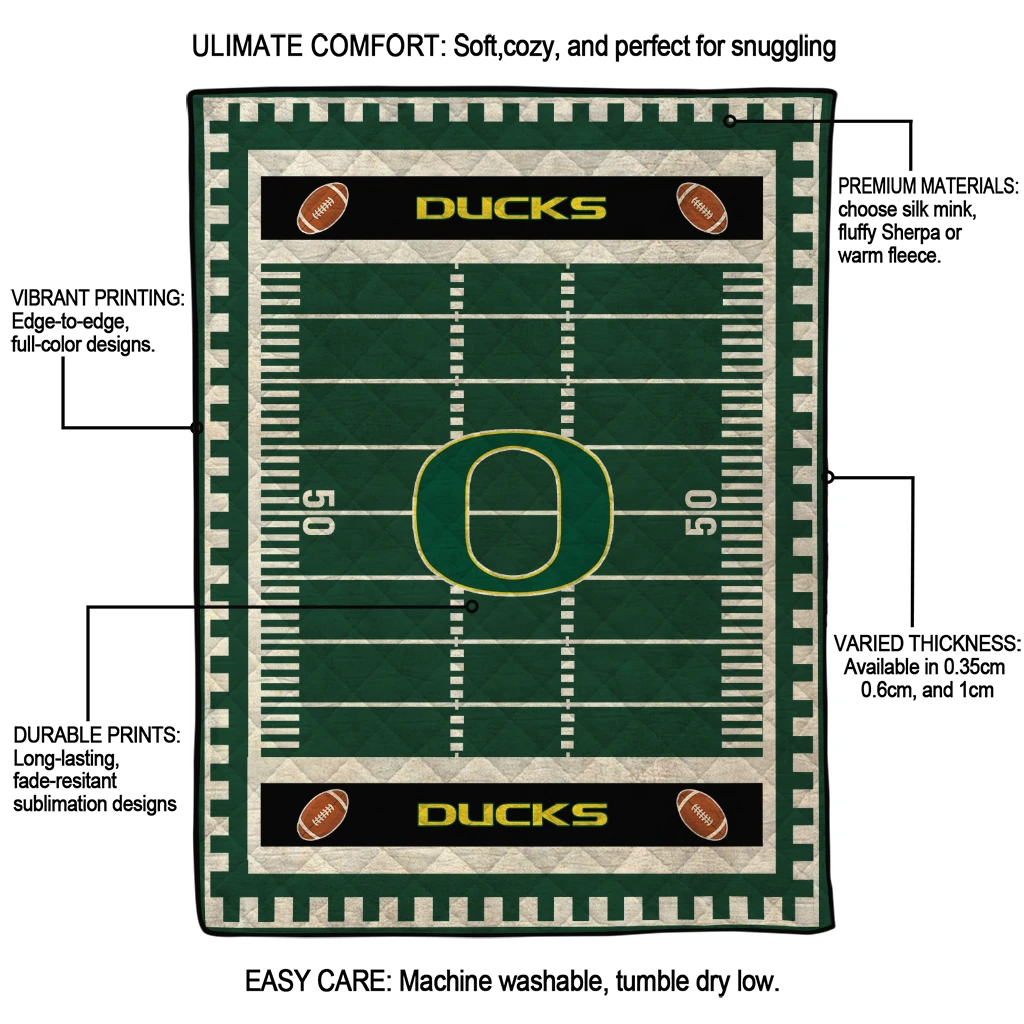Wrap yourself in warmth and pride with the Oregon Ducks Mickey Player Green Quilt Blanket from the Oregon Ducks Blankets collection at Yes That Blanket. Made from 100% premium quilting-weight polyester blended with a touch of microfiber, this quilt offers a smooth, soft finish you’ll love. Choose between two quilting styles—Stipple or Diagonal—and enjoy the comfort of a cotton-filled layer inside that adds extra coziness for every season. The border is available in classic black or white, giving your design a clean, timeless edge.