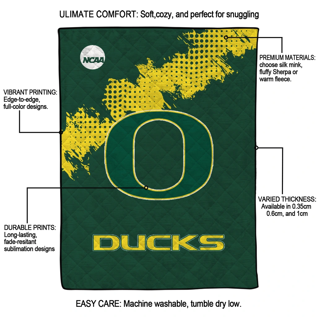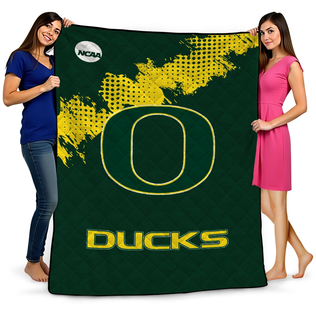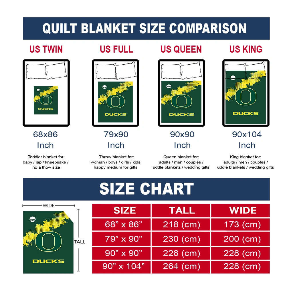 Wrap yourself in warmth and pride with the Oregon Ducks Paint Trail Green Quilt Blanket from the Oregon Ducks Blankets collection at Yes That Blanket. Made from 100% premium quilting-weight polyester blended with a touch of microfiber, this quilt offers a smooth, soft finish you’ll love. Choose between two quilting styles—Stipple or Diagonal—and enjoy the comfort of a cotton-filled layer inside that adds extra coziness for every season. The border is available in classic black or white, giving your design a clean, timeless edge.