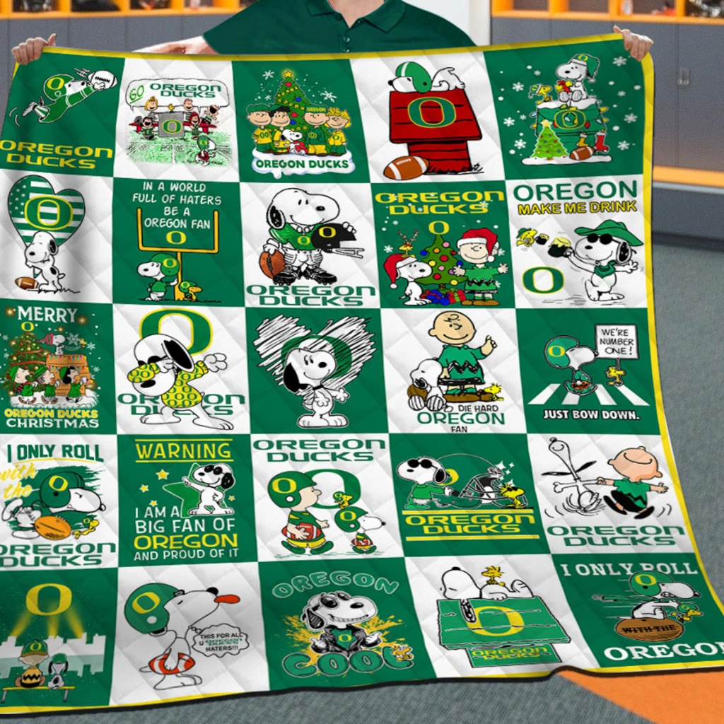 Oregon Ducks Quilt Blanket – Snoopy Cartoon Patchwork Green White