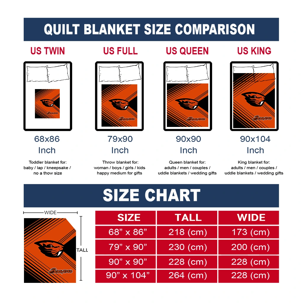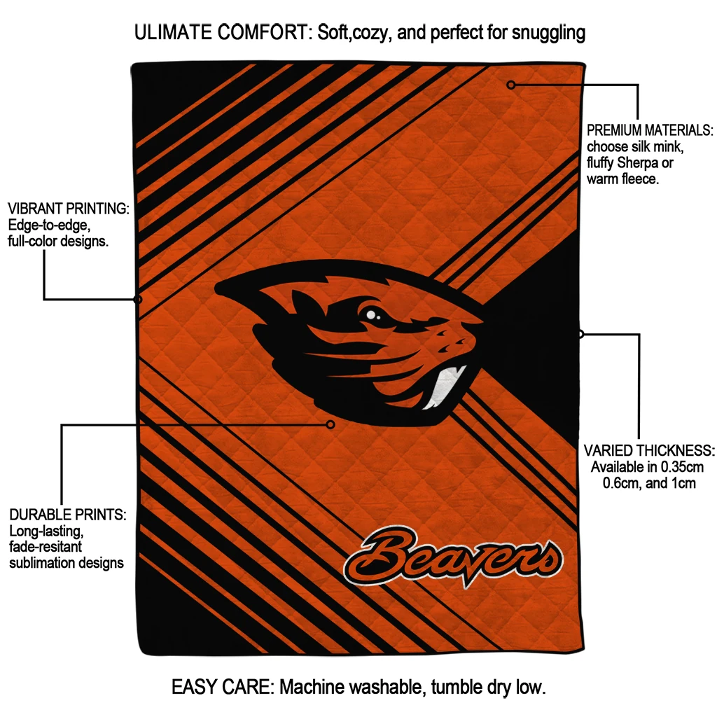 Wrap yourself in warmth and pride with the Oregon State Beavers Arrow Layers Orange Quilt Blanket from the Oregon State Beavers Blankets collection at Yes That Blanket. Made from 100% premium quilting-weight polyester blended with a touch of microfiber, this quilt offers a smooth, soft finish you’ll love. Choose between two quilting styles—Stipple or Diagonal—and enjoy the comfort of a cotton-filled layer inside that adds extra coziness for every season. The border is available in classic black or white, giving your design a clean, timeless edge.