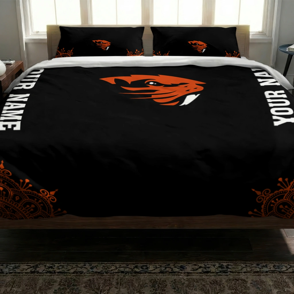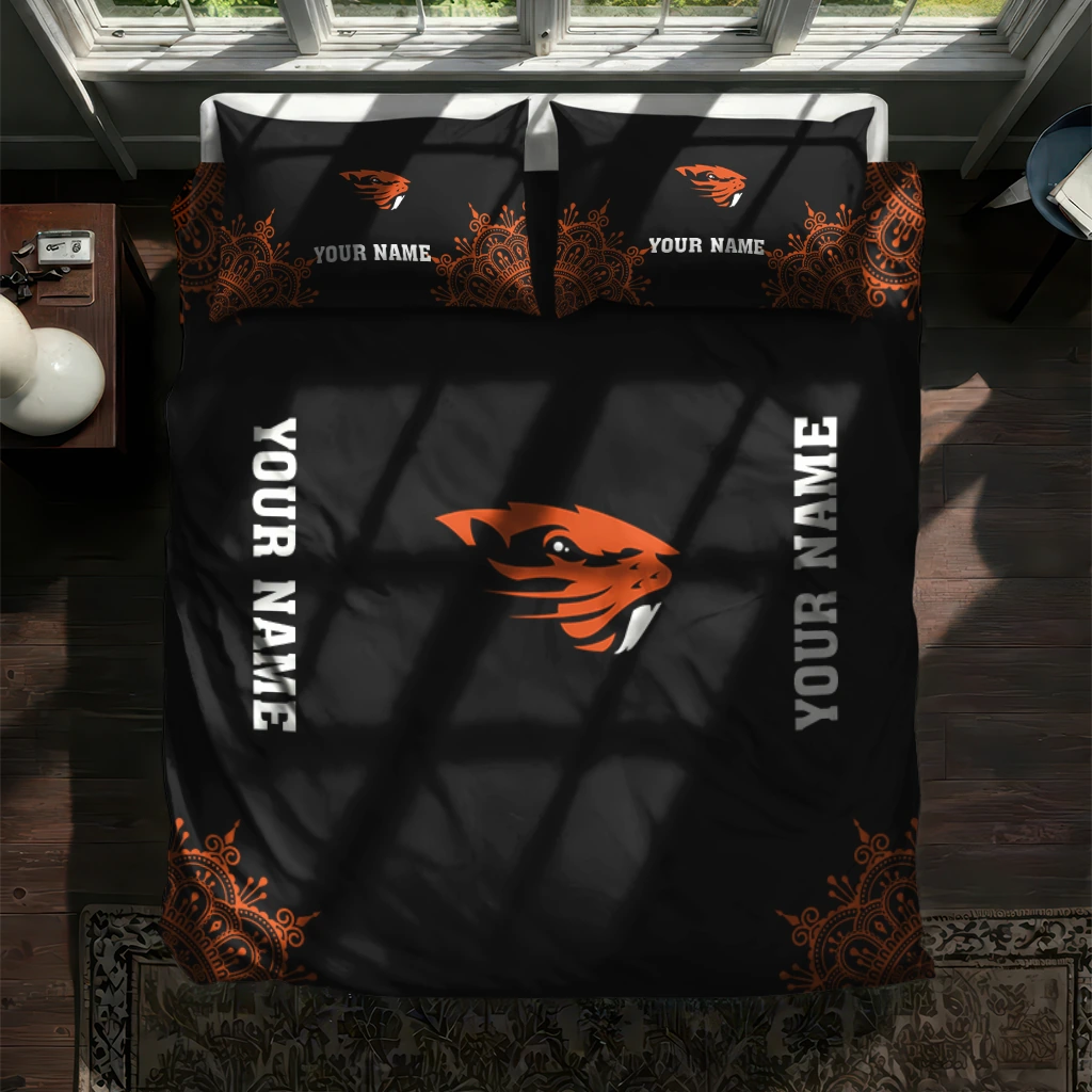 Oregon State Beavers Bedding Set – Custom Mandala Lacework Black Orange