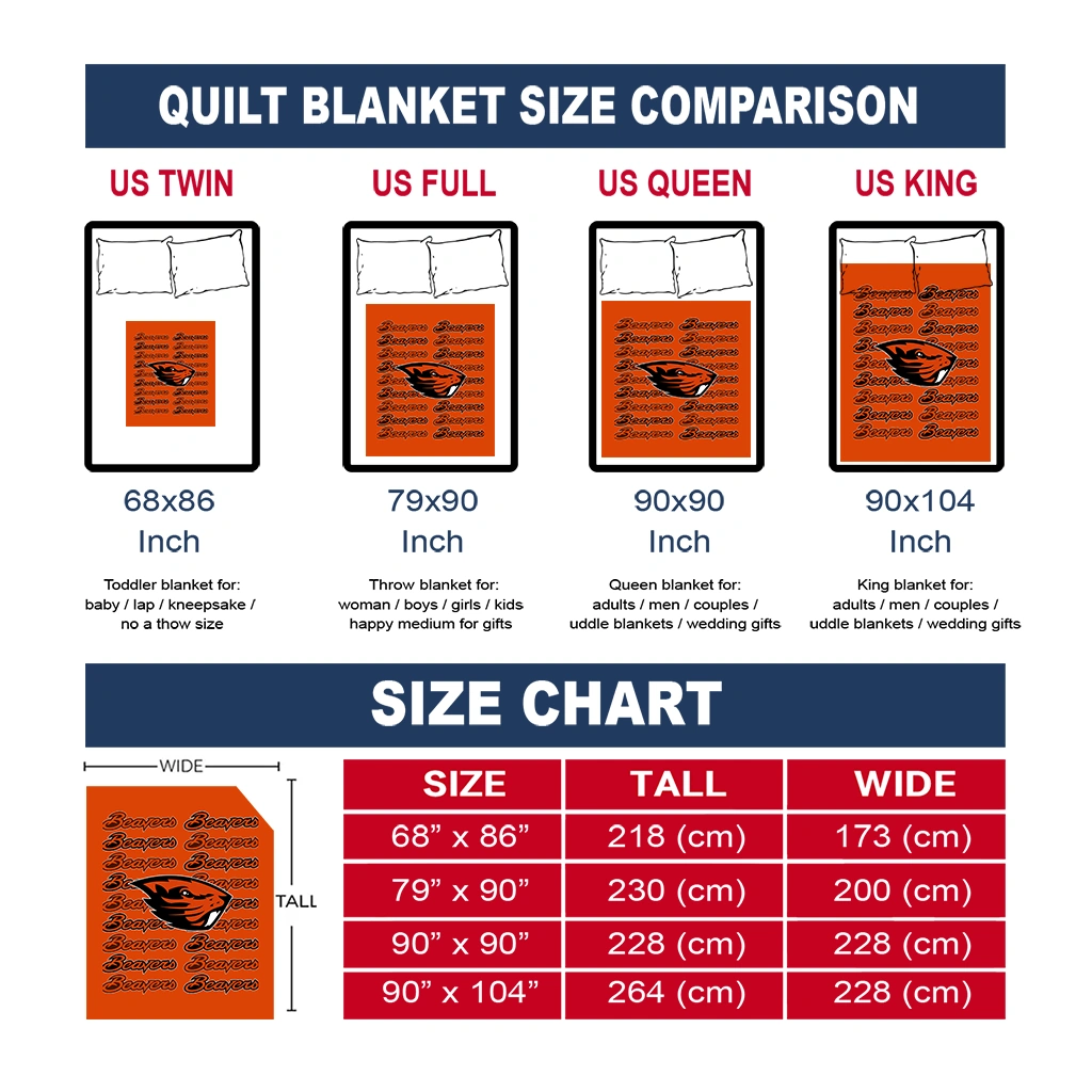 Wrap yourself in warmth and pride with the Oregon State Beavers Bold Red Orange Quilt Blanket from the Oregon State Beavers Blankets collection at Yes That Blanket. Made from 100% premium quilting-weight polyester blended with a touch of microfiber, this quilt offers a smooth, soft finish you’ll love. Choose between two quilting styles—Stipple or Diagonal—and enjoy the comfort of a cotton-filled layer inside that adds extra coziness for every season. The border is available in classic black or white, giving your design a clean, timeless edge.