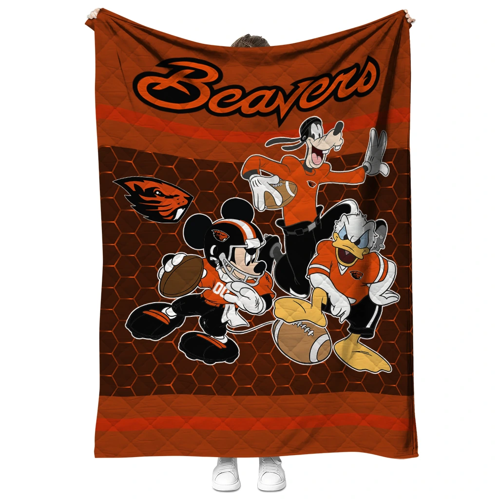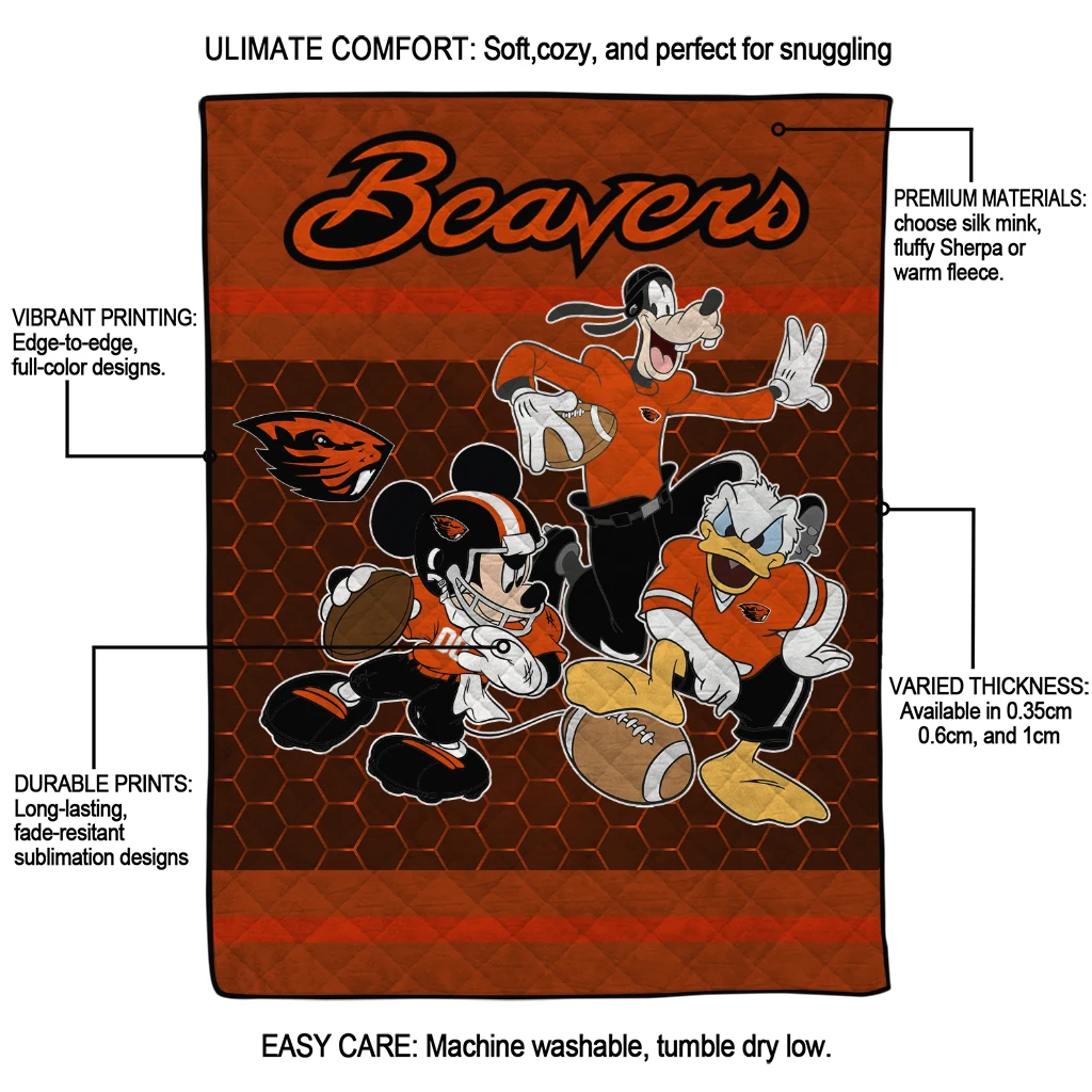 Wrap yourself in warmth and pride with the Oregon State Beavers Disney Football Orange Quilt Blanket from the Oregon State Beavers Blankets collection at Yes That Blanket. Made from 100% premium quilting-weight polyester blended with a touch of microfiber, this quilt offers a smooth, soft finish you’ll love. Choose between two quilting styles—Stipple or Diagonal—and enjoy the comfort of a cotton-filled layer inside that adds extra coziness for every season. The border is available in classic black or white, giving your design a clean, timeless edge.