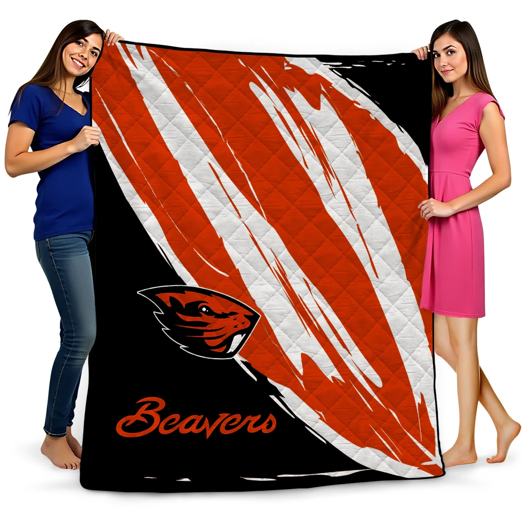 Wrap yourself in warmth and pride with the Oregon State Beavers Stroke Art Orange White Quilt Blanket from the Oregon State Beavers Blankets collection at Yes That Blanket. Made from 100% premium quilting-weight polyester blended with a touch of microfiber, this quilt offers a smooth, soft finish you’ll love. Choose between two quilting styles—Stipple or Diagonal—and enjoy the comfort of a cotton-filled layer inside that adds extra coziness for every season. The border is available in classic black or white, giving your design a clean, timeless edge.