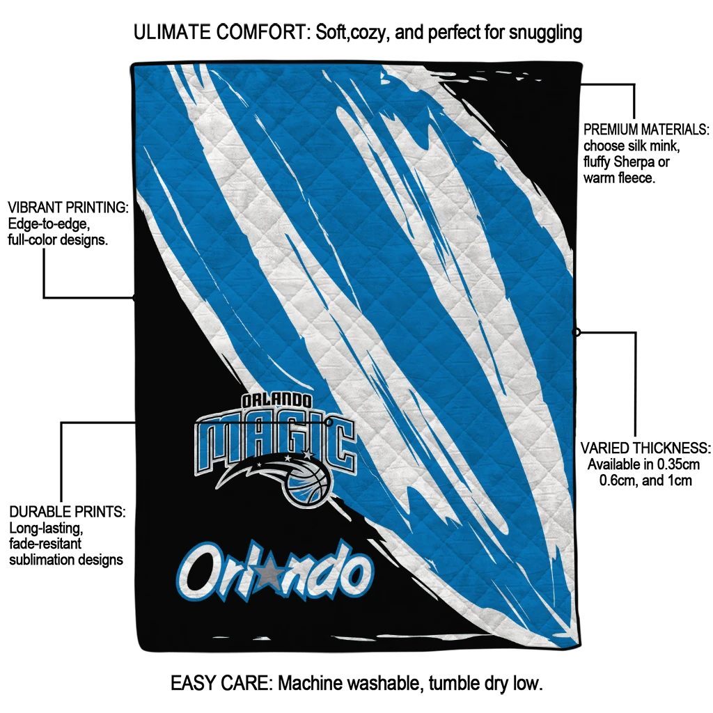 The Orlando Magic Stroke Art Blue White Quilt Blanket is more than a blanket—it’s everyday comfort, thoughtfully made. Crafted from premium quilting fabric with a soft microfiber touch, it offers a smooth hand-feel and lasting coziness. Layered quilting with a cotton-filled core provides adaptable warmth across seasons while maintaining a clean, tailored look on your bed or sofa.