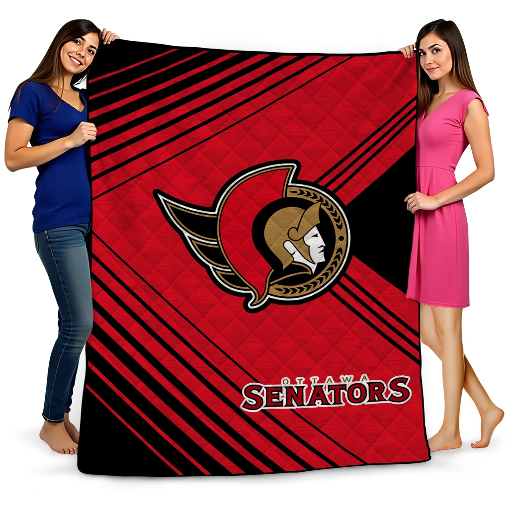 Wrap yourself in warmth and pride with the Ottawa Senators Arrow Layers Red Quilt Blanket from the Ottawa Senators Blankets collection at Yes That Blanket. Made from 100% premium quilting-weight polyester blended with a touch of microfiber, this quilt offers a smooth, soft finish you’ll love. Choose between two quilting styles—Stipple or Diagonal—and enjoy the comfort of a cotton-filled layer inside that adds extra coziness for every season. The border is available in classic black or white, giving your design a clean, timeless edge.