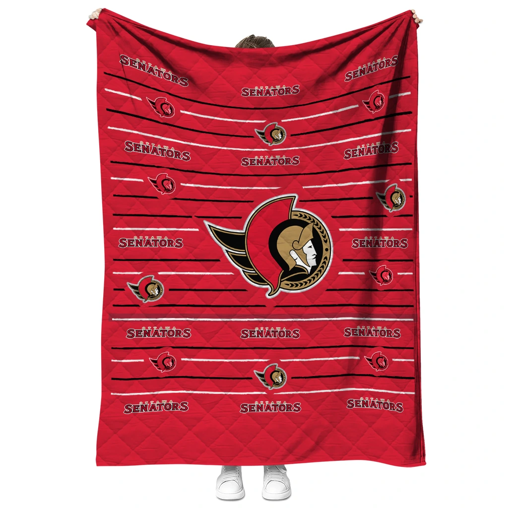Wrap yourself in warmth and pride with the Ottawa Senators Handdrawn Stripes Red Quilt Blanket from the Ottawa Senators Blankets collection at Yes That Blanket. Made from 100% premium quilting-weight polyester blended with a touch of microfiber, this quilt offers a smooth, soft finish you’ll love. Choose between two quilting styles—Stipple or Diagonal—and enjoy the comfort of a cotton-filled layer inside that adds extra coziness for every season. The border is available in classic black or white, giving your design a clean, timeless edge.