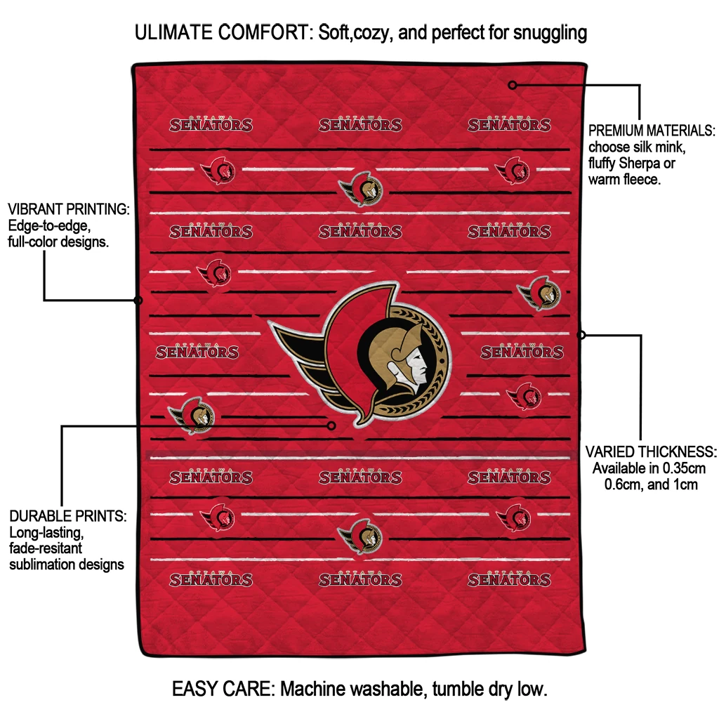 The Ottawa Senators Handdrawn Stripes Red Quilt Blanket is more than a blanket—it’s everyday comfort, thoughtfully made. Crafted from premium quilting fabric with a soft microfiber touch, it offers a smooth hand-feel and lasting coziness. Layered quilting with a cotton-filled core provides adaptable warmth across seasons while maintaining a clean, tailored look on your bed or sofa.