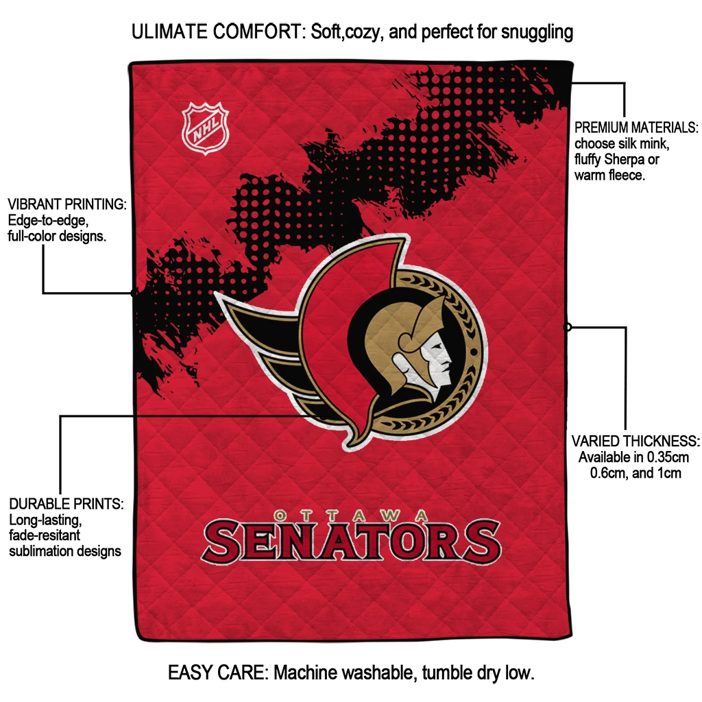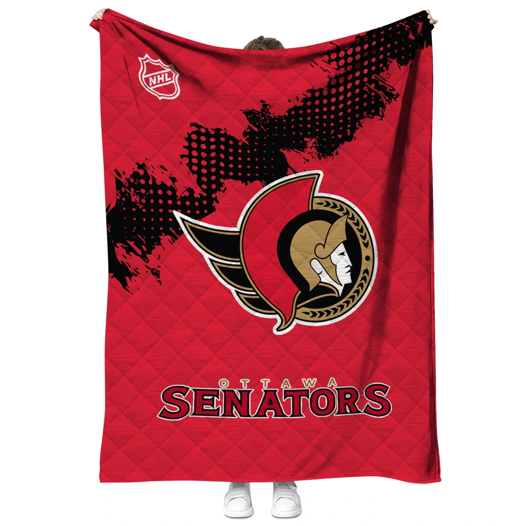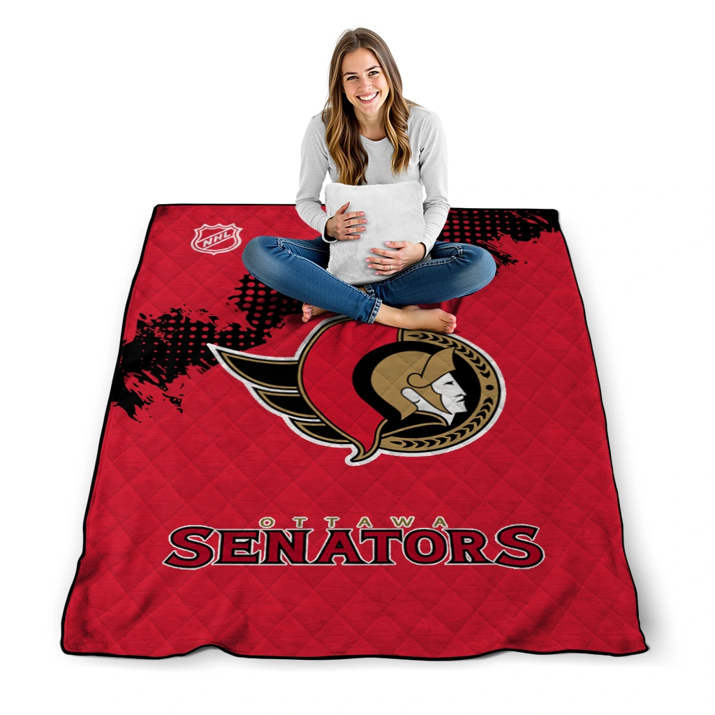 Ottawa Senators NHL Shield Red Quilt Blanket