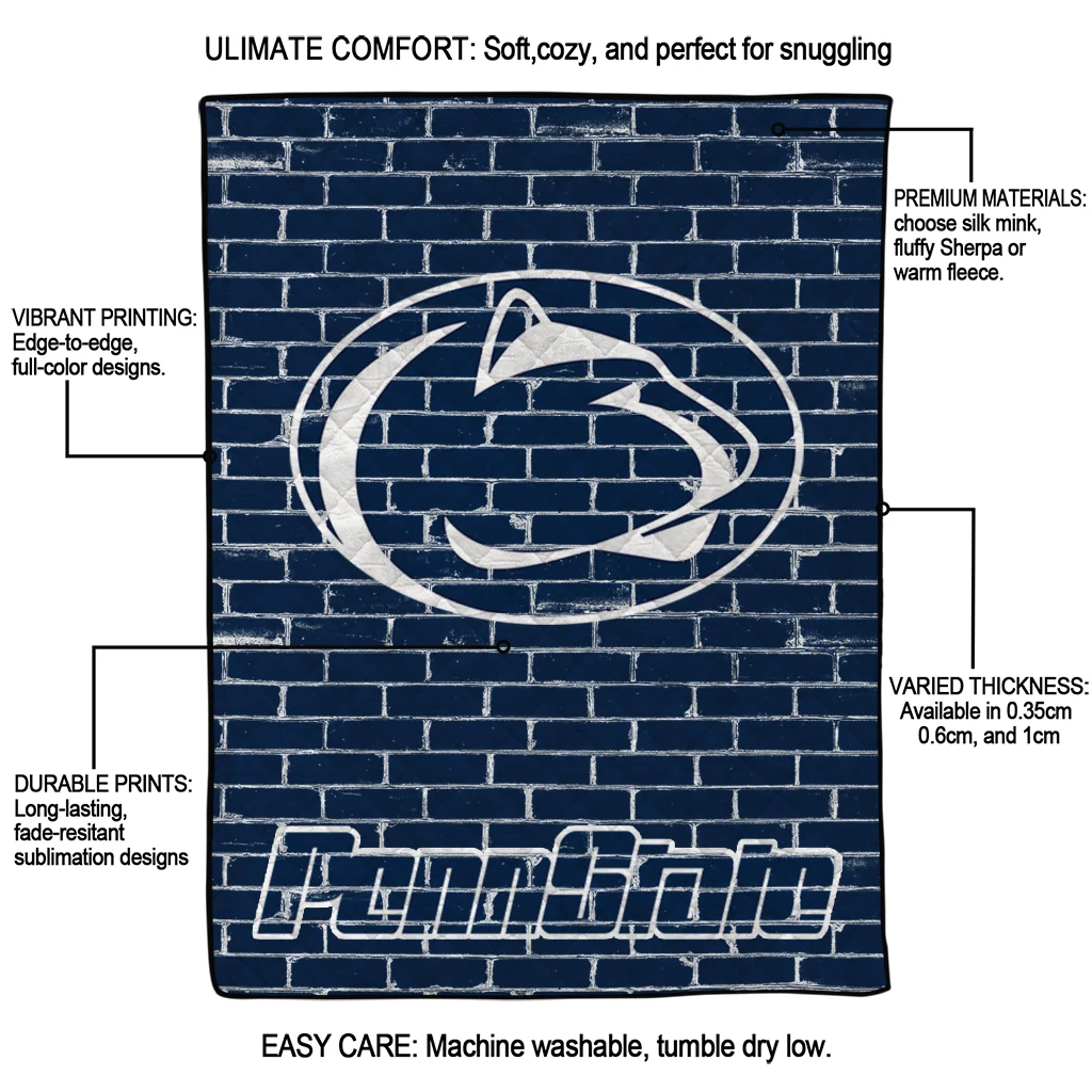 Penn State Nittany Lions Brick Grid Blue Quilt Blanket