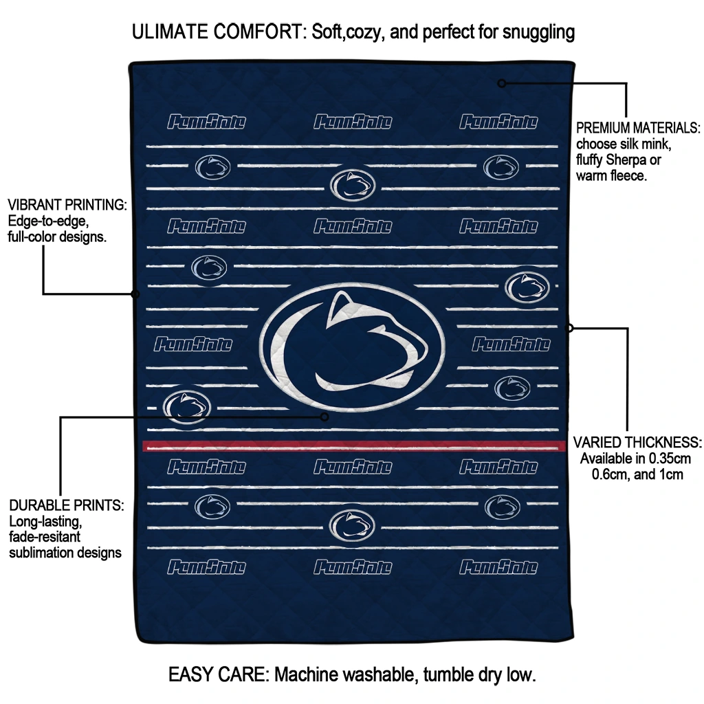 Penn State Nittany Lions Handdrawn Stripes Blue Quilt Blanket