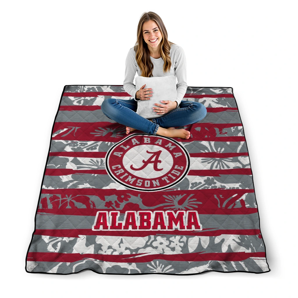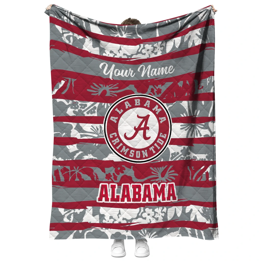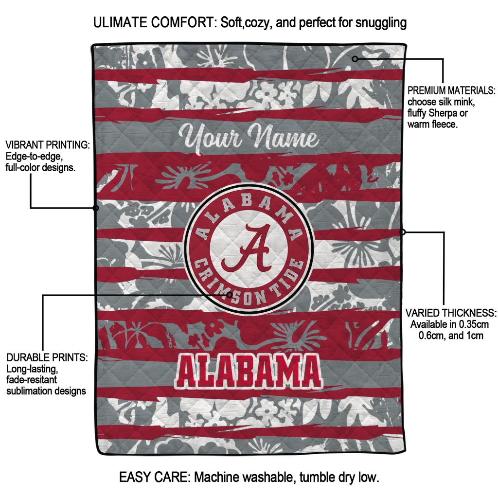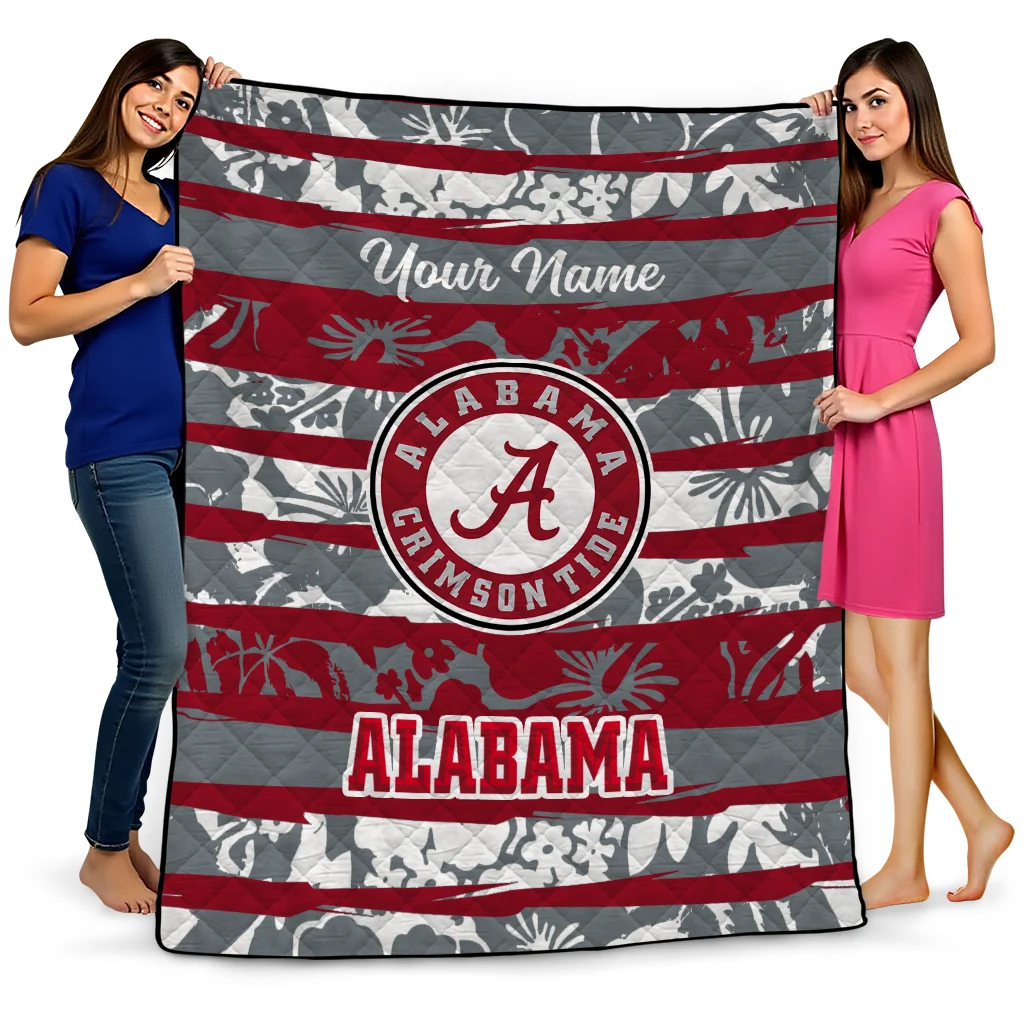 Personalized Alabama Crimson Tide Layered Florals Crimson White Quilt Blanket