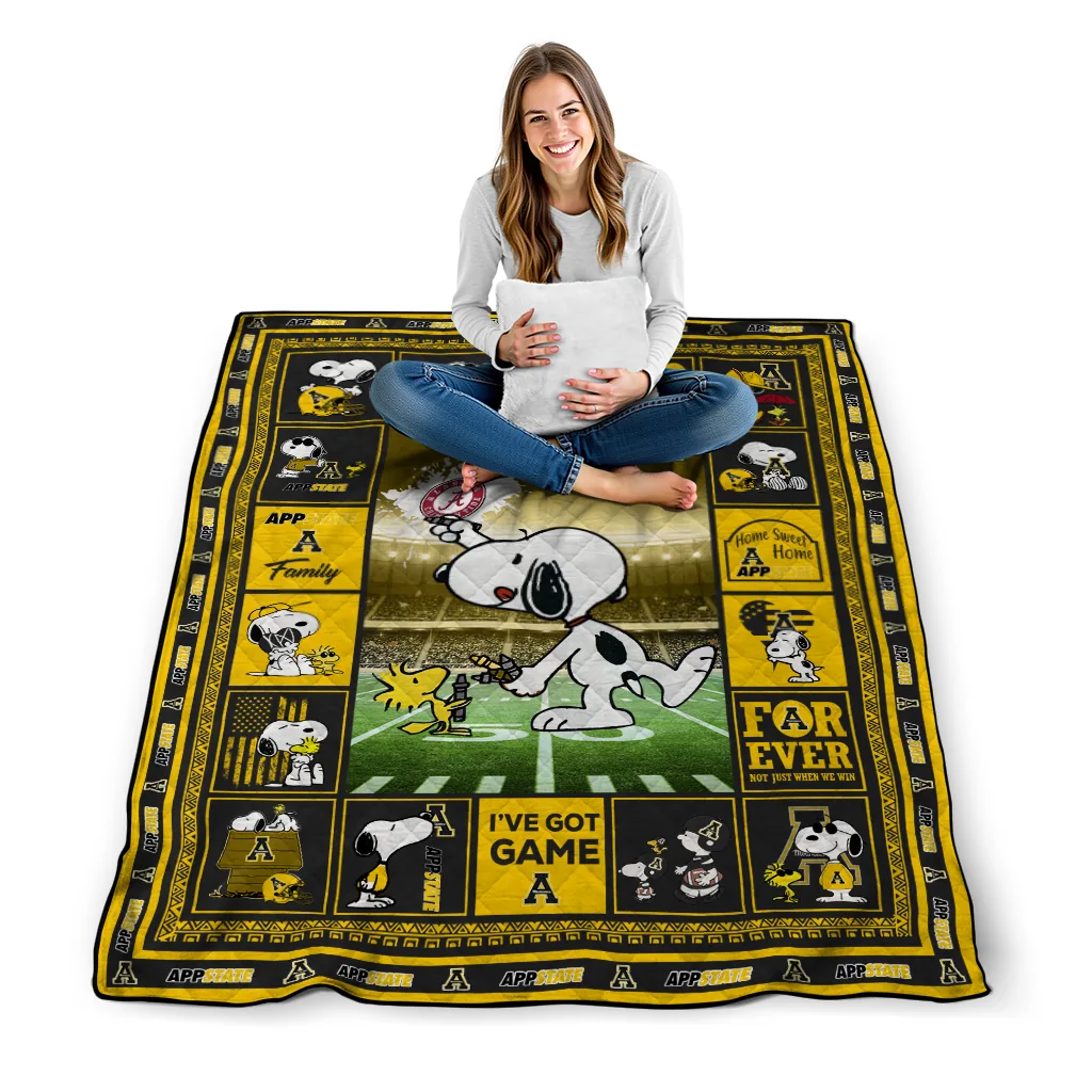 The Personalized Appalachian State Mountaineers Snoopy Coach Black Quilt Blanket is more than a blanket—it’s everyday comfort, thoughtfully made. Crafted from premium quilting fabric with a soft microfiber touch, it offers a smooth hand-feel and lasting coziness. Layered quilting with a cotton-filled core provides adaptable warmth across seasons while maintaining a clean, tailored look on your bed or sofa.