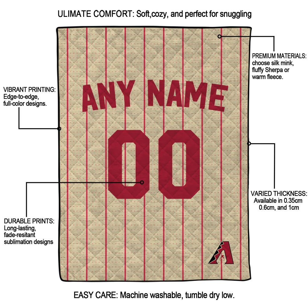 The Personalized Arizona Diamondbacks Pin Dot Quilt Blanket is more than a blanket—it’s everyday comfort, thoughtfully made. Crafted from premium quilting fabric with a soft microfiber touch, it offers a smooth hand-feel and lasting coziness. Layered quilting with a cotton-filled core provides adaptable warmth across seasons while maintaining a clean, tailored look on your bed or sofa.