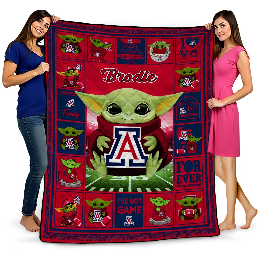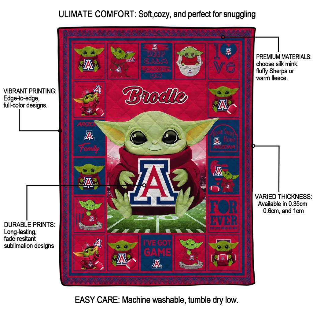 Personalized Arizona Wildcats Yody Baby Pattern Red Quilt Blanket