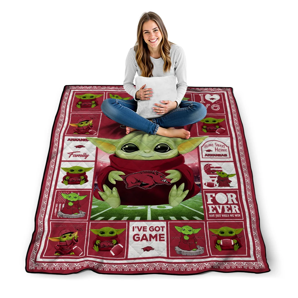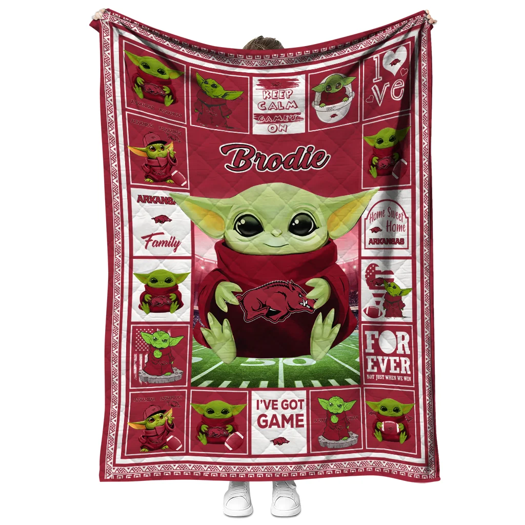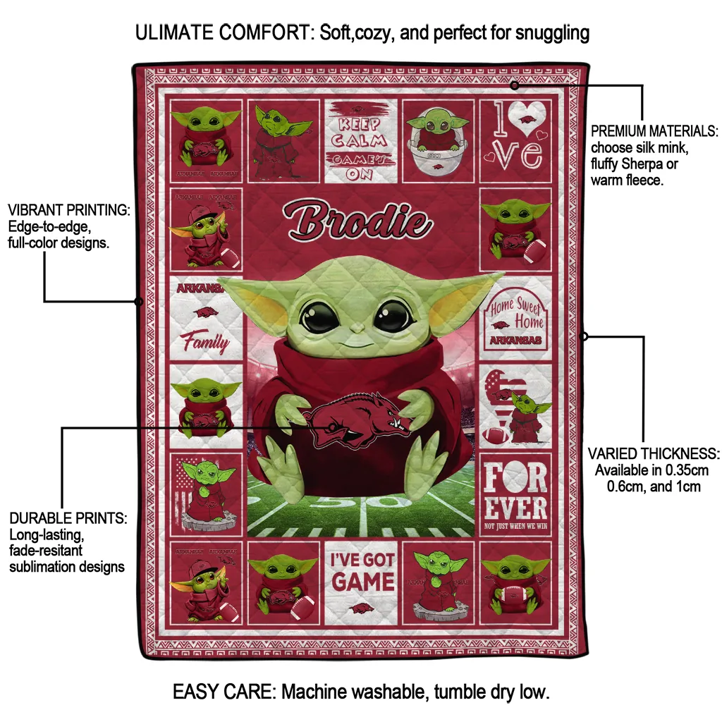 Personalized Arkansas Razorbacks Yody Baby Pattern Red Quilt Blanket