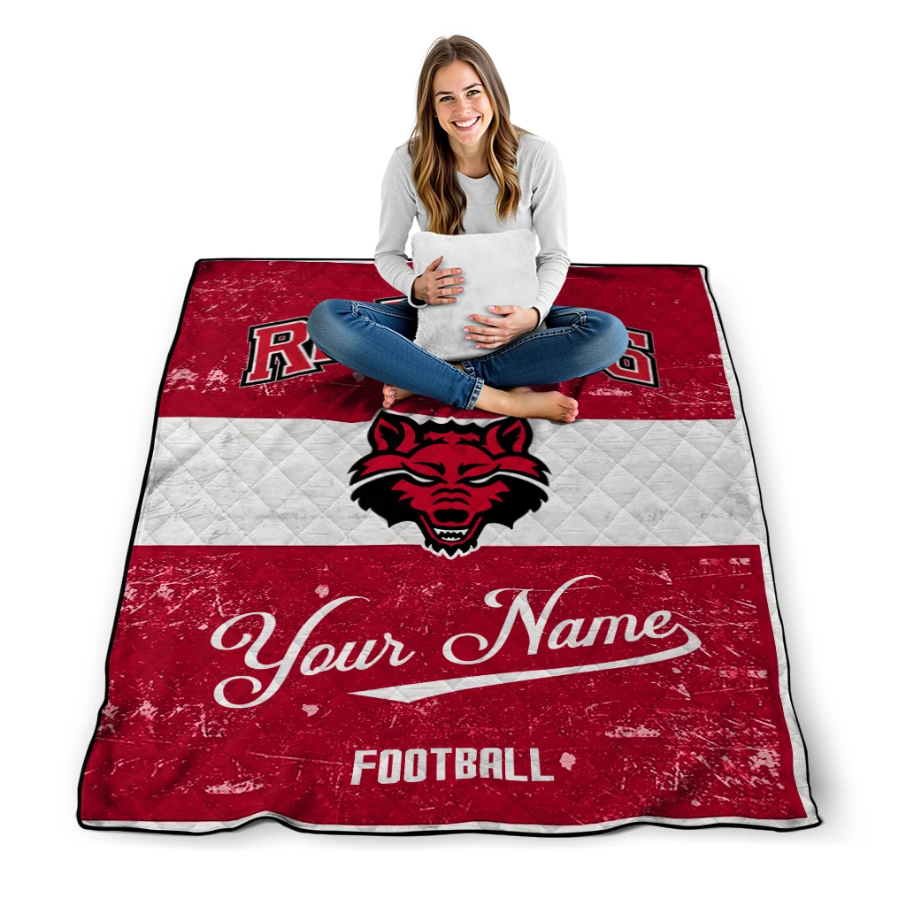 Wrap yourself in warmth and pride with the Personalized Arkansas State Red Wolves Hibiscus Burst Scarlet White Quilt Blanket from the Arkansas State Red Wolves Blankets collection at Yes That Blanket. Made from 100% premium quilting-weight polyester blended with a touch of microfiber, this quilt offers a smooth, soft finish you’ll love. Choose between two quilting styles—Stipple or Diagonal—and enjoy the comfort of a cotton-filled layer inside that adds extra coziness for every season. The border is available in classic black or white, giving your design a clean, timeless edge.