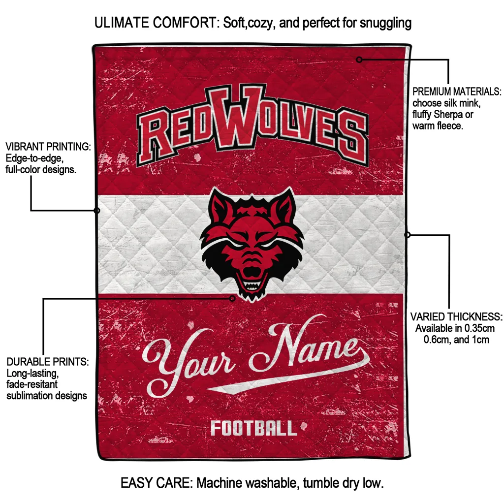 The Personalized Arkansas State Red Wolves Hibiscus Burst Scarlet White Quilt Blanket is more than a blanket—it’s everyday comfort, thoughtfully made. Crafted from premium quilting fabric with a soft microfiber touch, it offers a smooth hand-feel and lasting coziness. Layered quilting with a cotton-filled core provides adaptable warmth across seasons while maintaining a clean, tailored look on your bed or sofa.