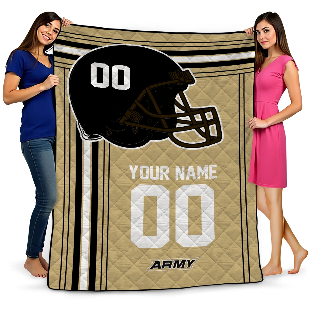 Personalized Army Black Knights Helmet Theme Gold Quilt Blanket