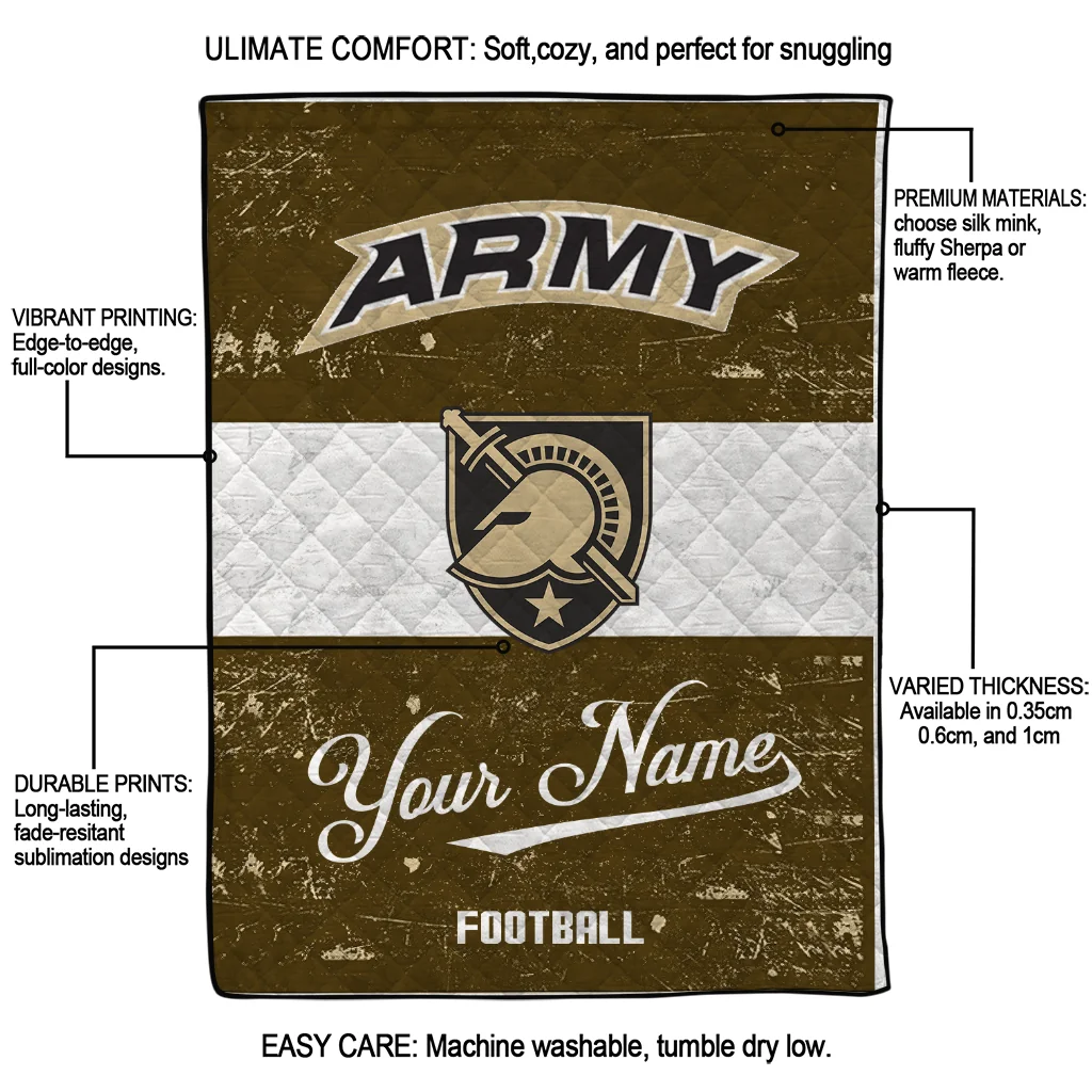 Personalized Army Black Knights Hibiscus Burst Gold White Quilt Blanket