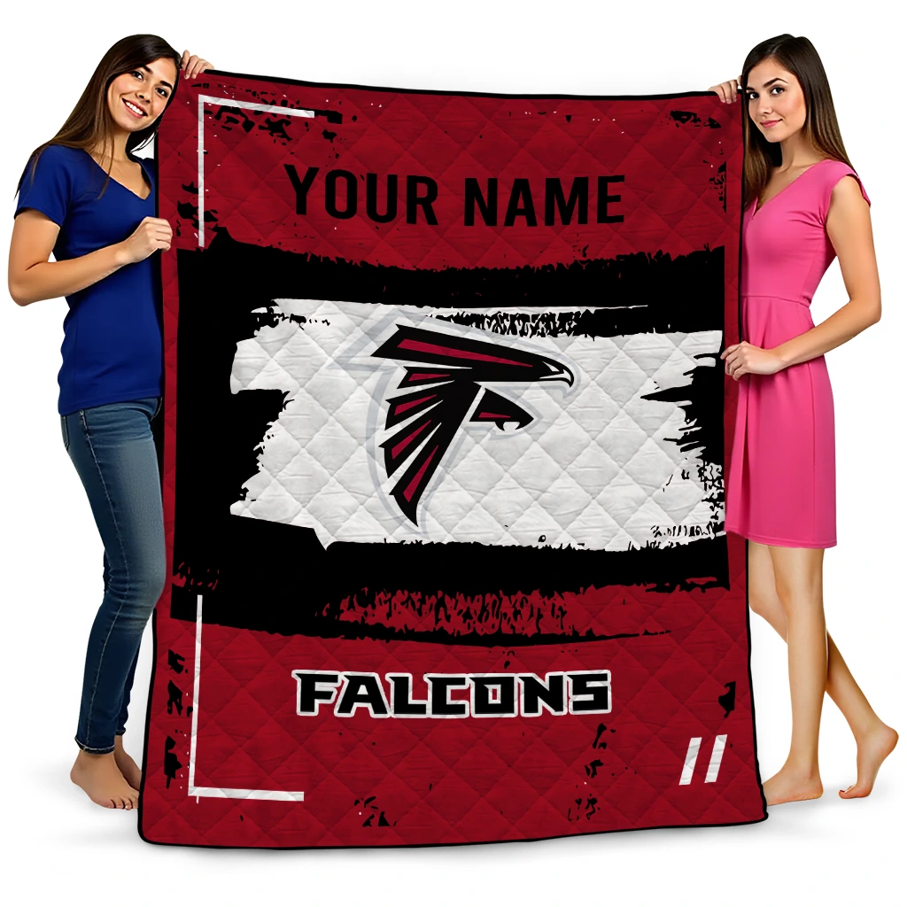 Personalized Atlanta Falcons Grunge Patch Red White Quilt Blanket